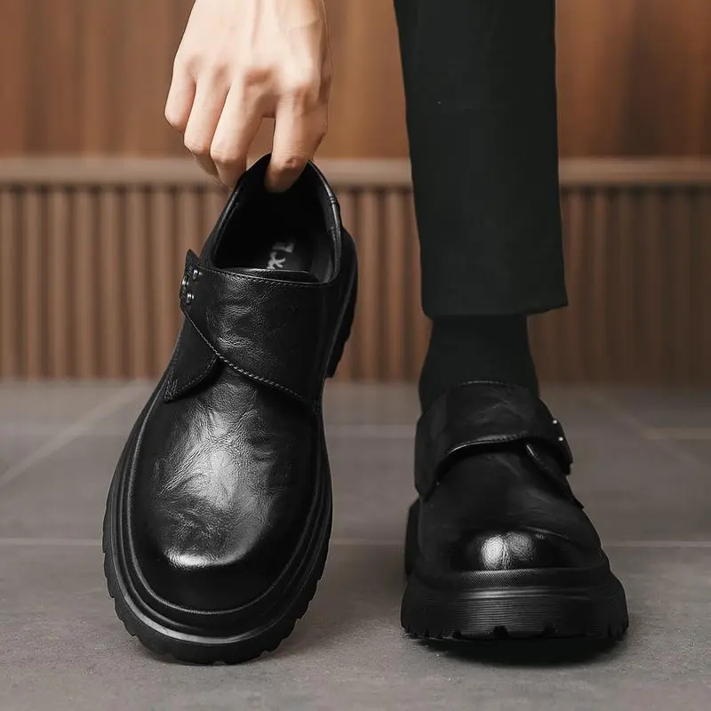 Men's Trendy Derby Shoes with 5cm Elevator Sole & Velcro Strap - Stylish Height Boost Footwear for Casual/Formal Wear