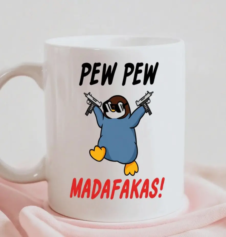 Funny Penguin Coffee Mug with Bold Quote Graphic, Cute Cartoon Animal Cup, Gift for Friends, Daily Coffee Break 11 oz