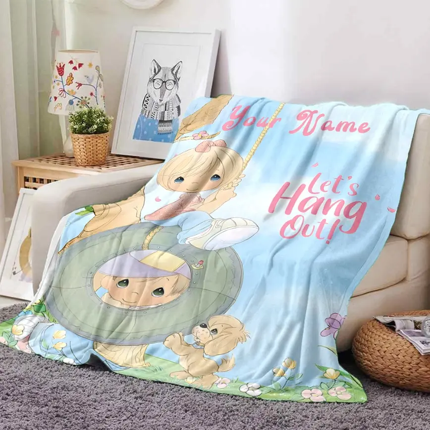 Precious Moments Custom Name Flannel Blanket Personalized Cute Angel Aesthetic Soft Warm Throw