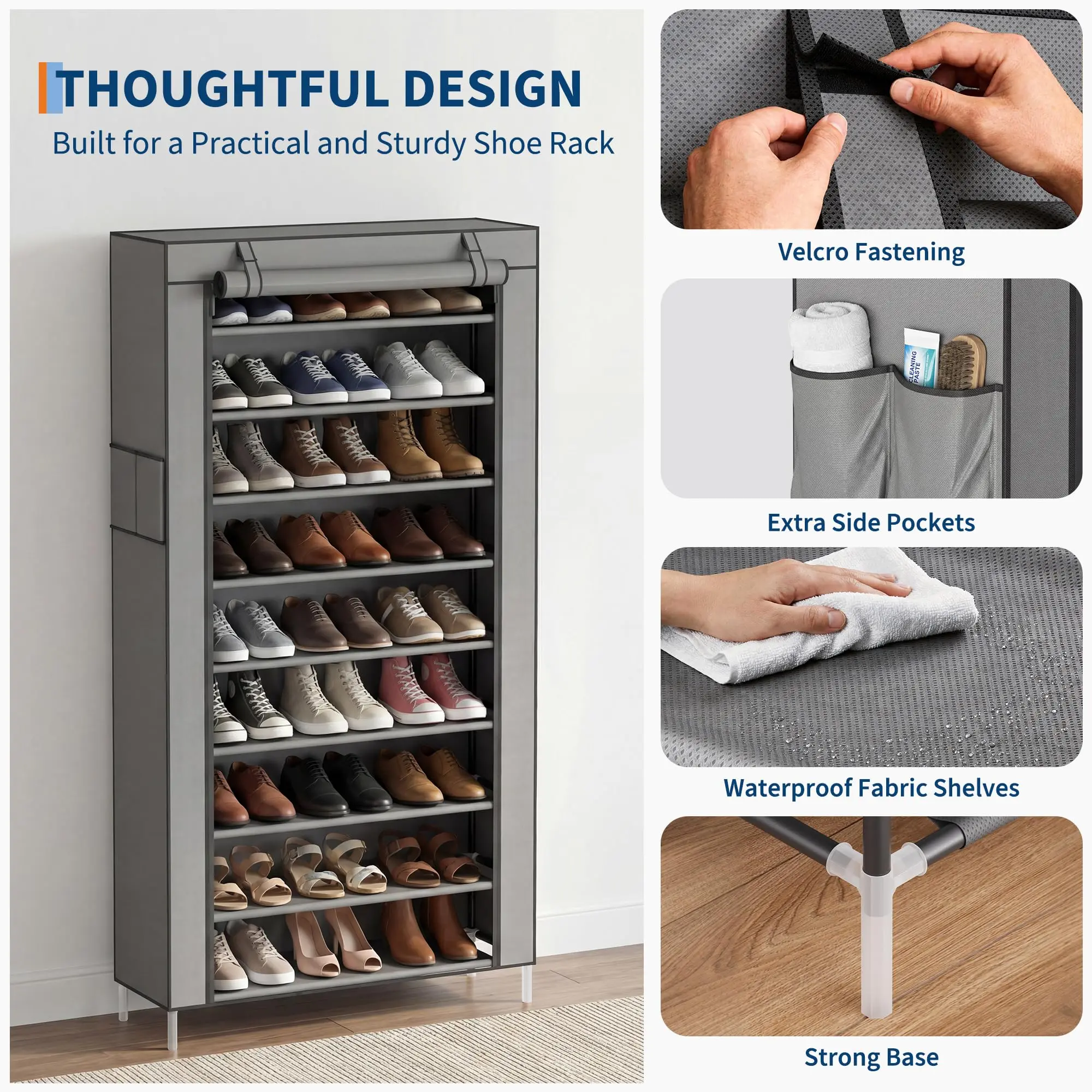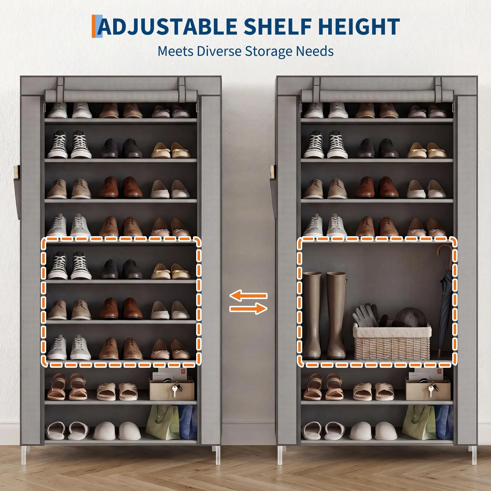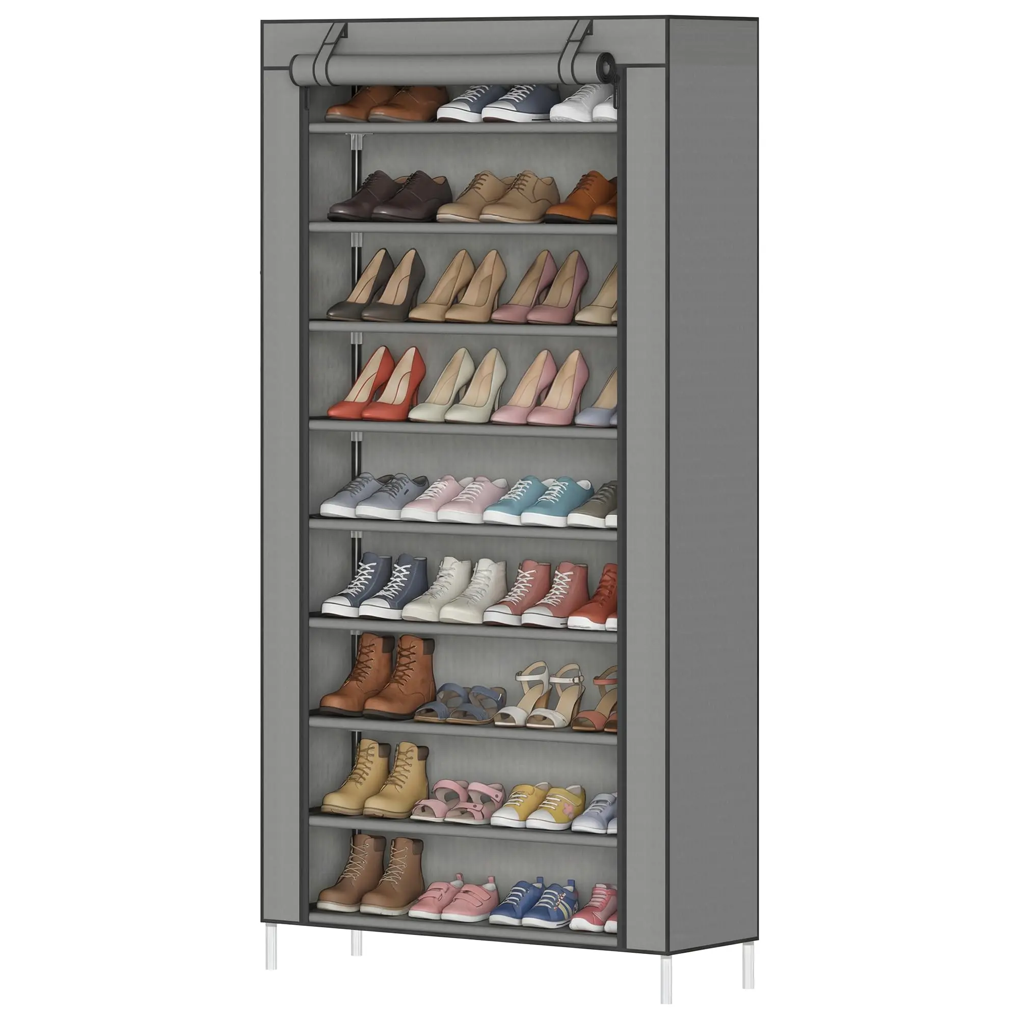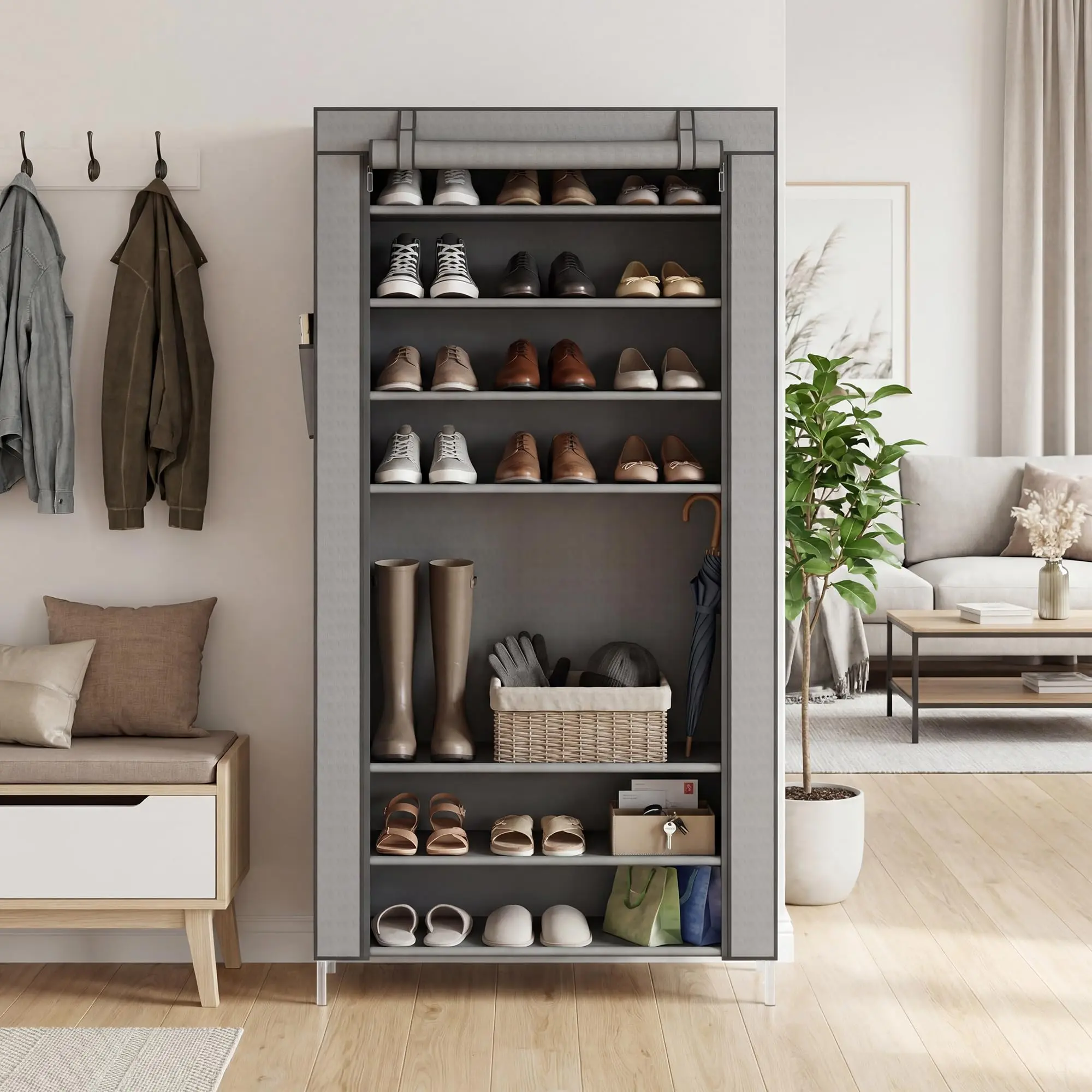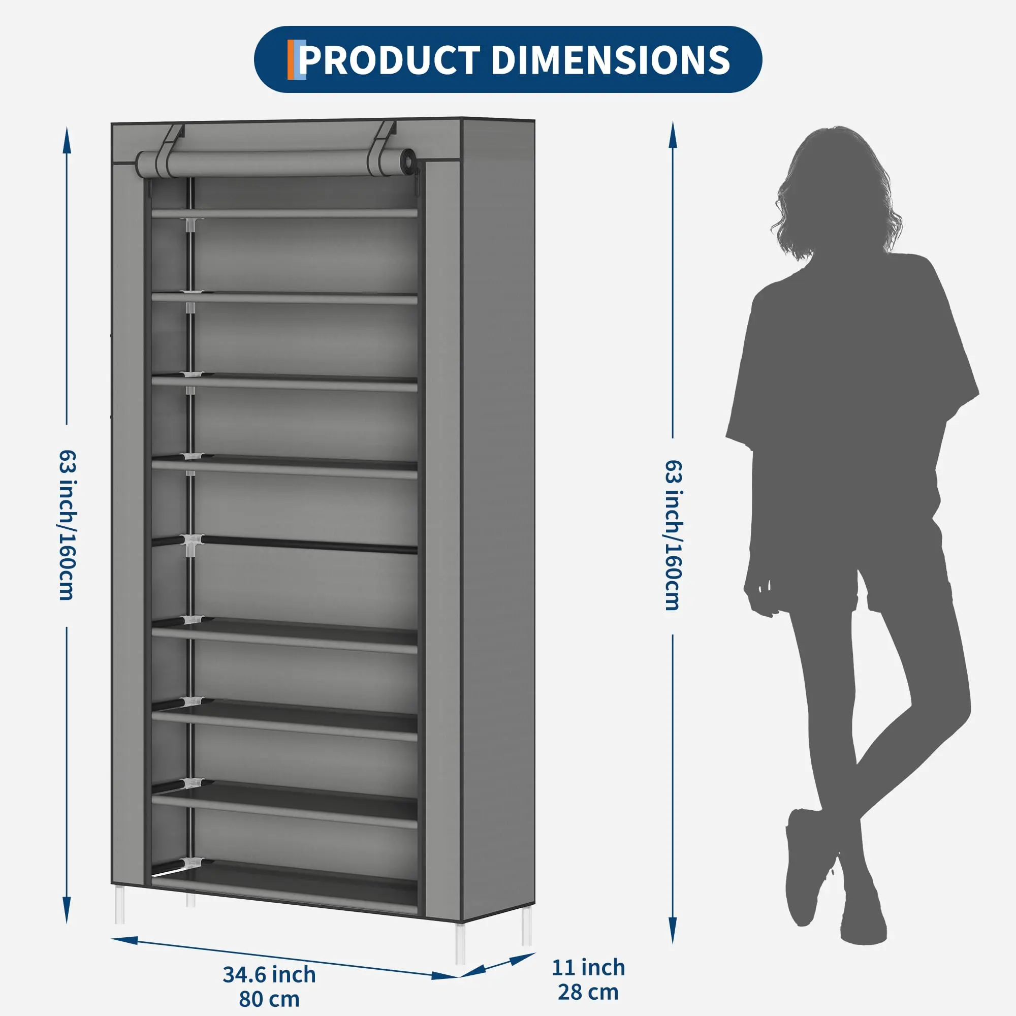 · Sturdy, Stable & Easy-to-Clean Shelves---Constructed with metal tubes and thickened plastic connectors, this covered shoe rack offers strong support and long-lasting durability. Anti-tip hardware lets you secure it to the wall for added safety, while waterproof non-woven fabric shelves resist tearing and wipe clean easily.