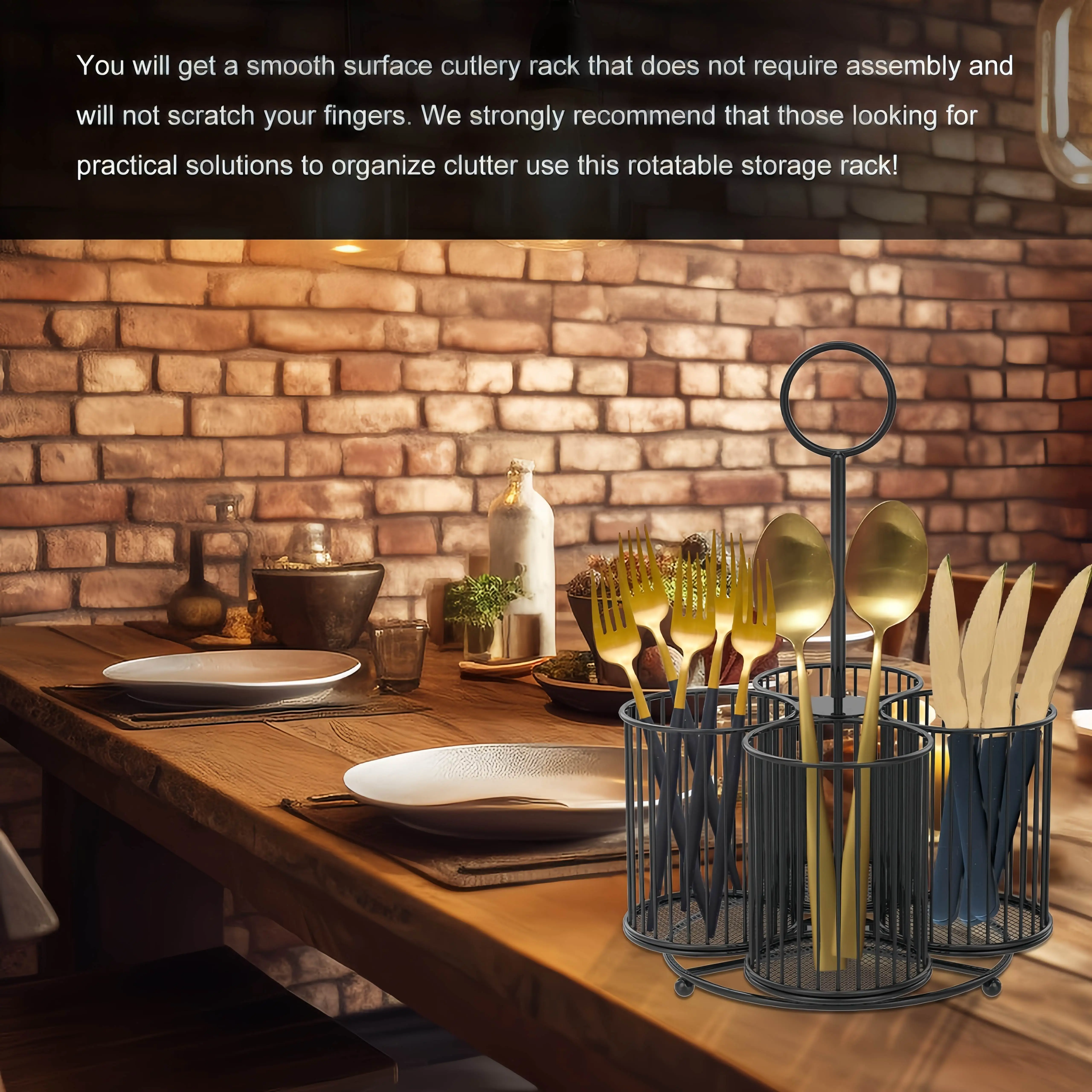 Kitchen Utensil Holder, Cutlery Rack, Large Metal Utensil Organizer, 4-Section Metal Utensil Storage Rack, Suitable for Kitchen Table