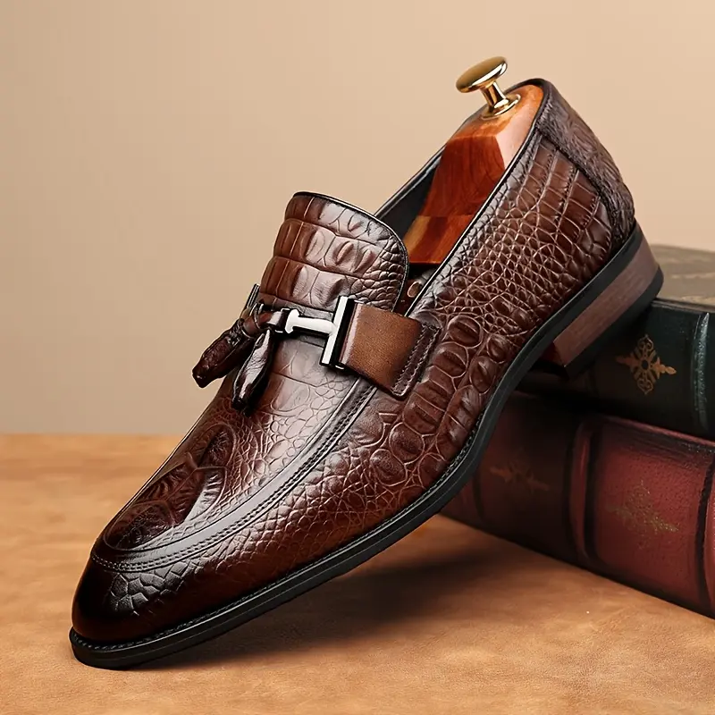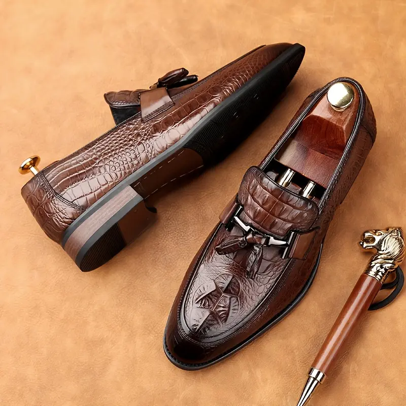 Men's Calfskin Square Toe Slip-On Loafers Luxury Dress Shoes