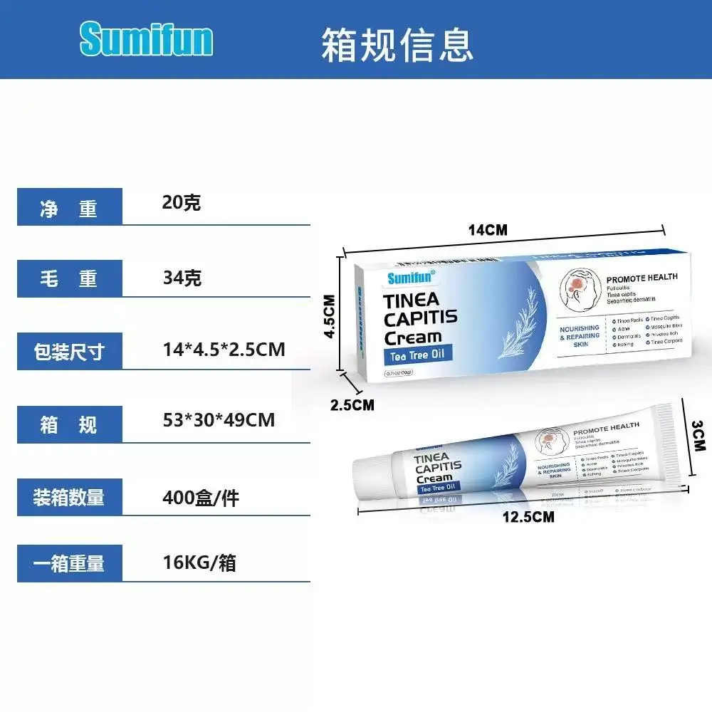 Sumifun antibacterial antipruritic cream combines tea tree essential oil with a natural formula.It's designed to cure tinea capitis and fungus Treatment Antifungal.The cream contains tea tree oil, known for its strong antibacterial, antifungal, and antiviral properties.It treats skin infections and itching effectively.