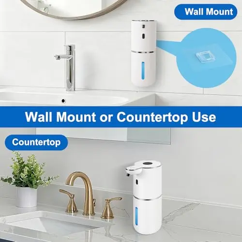 ·Wall Mount or Countertop Use: Dual installation options allow wall mounting (no drilling required) or countertop placement. The 380ml/12.8oz clear tank works with liquid soap, dish soap, shampoo, and more—ideal as a bathroom Hand Soap Dispenser or kitchen dish soap dispenser.