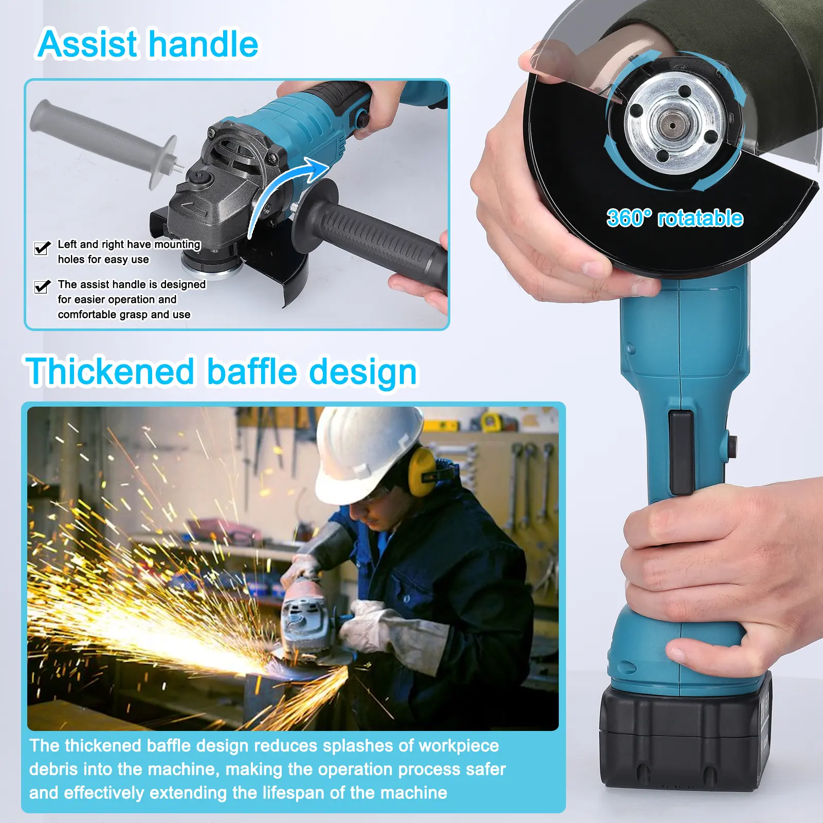 【Wide Applications】: Angle grinder can be used for both grinding, polishing, trimming, deburring and other processing processes, and also suitable for cutting metal, stone, concrete and other hard materials. Perfect for interior decoration, property maintenance such as wall panel grooving, floor cutting, ceramic tile cutting, equipment maintenance, hydropower installation, PVC pipes cutting, and daily maintenance.