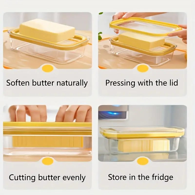 Acrylic Butter Keeper and Cutter - Food Grade, Reusable, Square-Shaped Cheese Storage Box with Clip Closure for Freshness and Easy Access