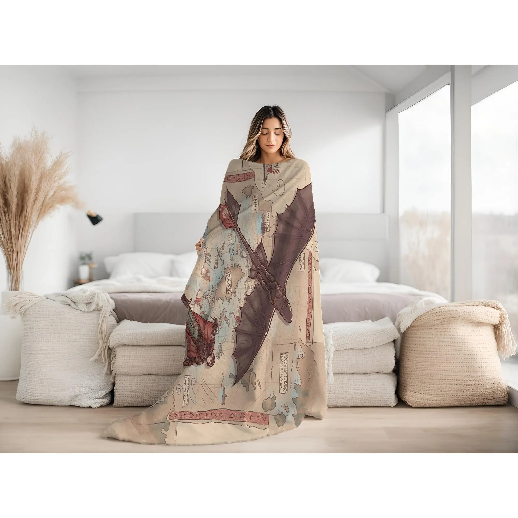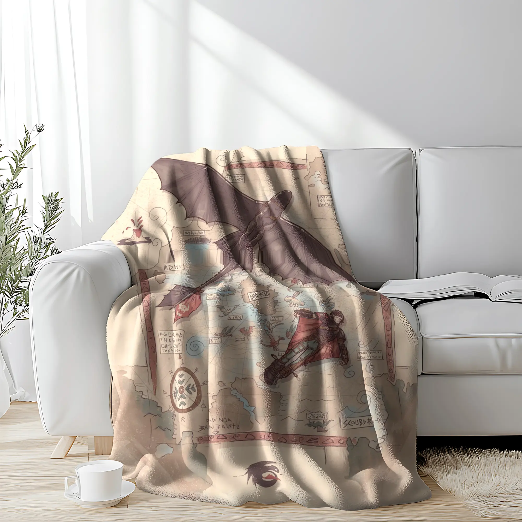 Vintage How to Train Your Dragon Print Fleece Blanket – Cute Hiccup & Toothless Pattern Soft Plush Throw, Perfect for Kids Adults, Ideal Bedroom Dorm Decor Gift for HTTYD Fans