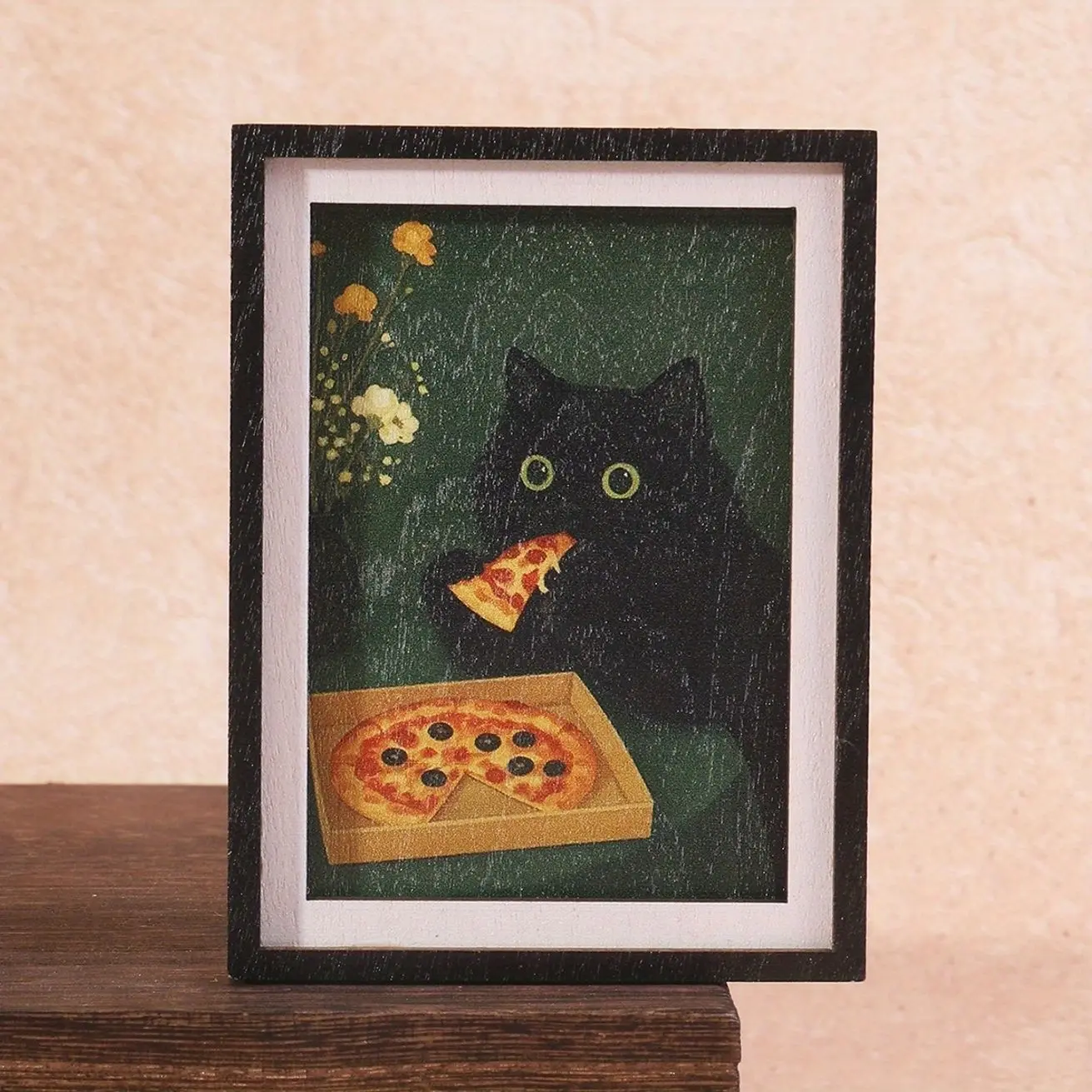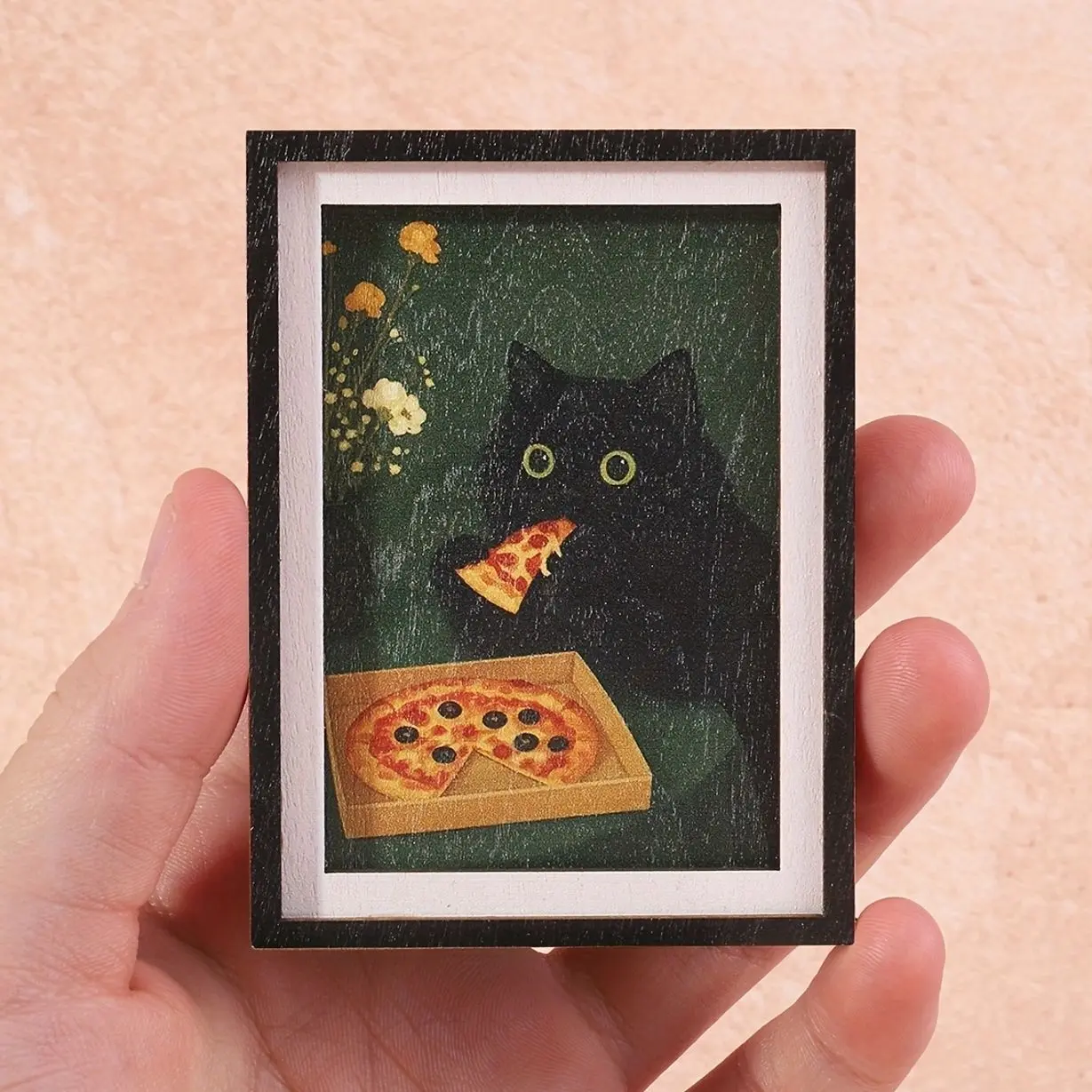 5. 2D ACRYLIC Mini Size Photo Frame Refrigerator Magnet, Fun Home Decoration Prop, Printed with Black Cat and Pizza Patterns, Unique and Exquisite Holiday Gift, Ideal Gift for Home Decoration