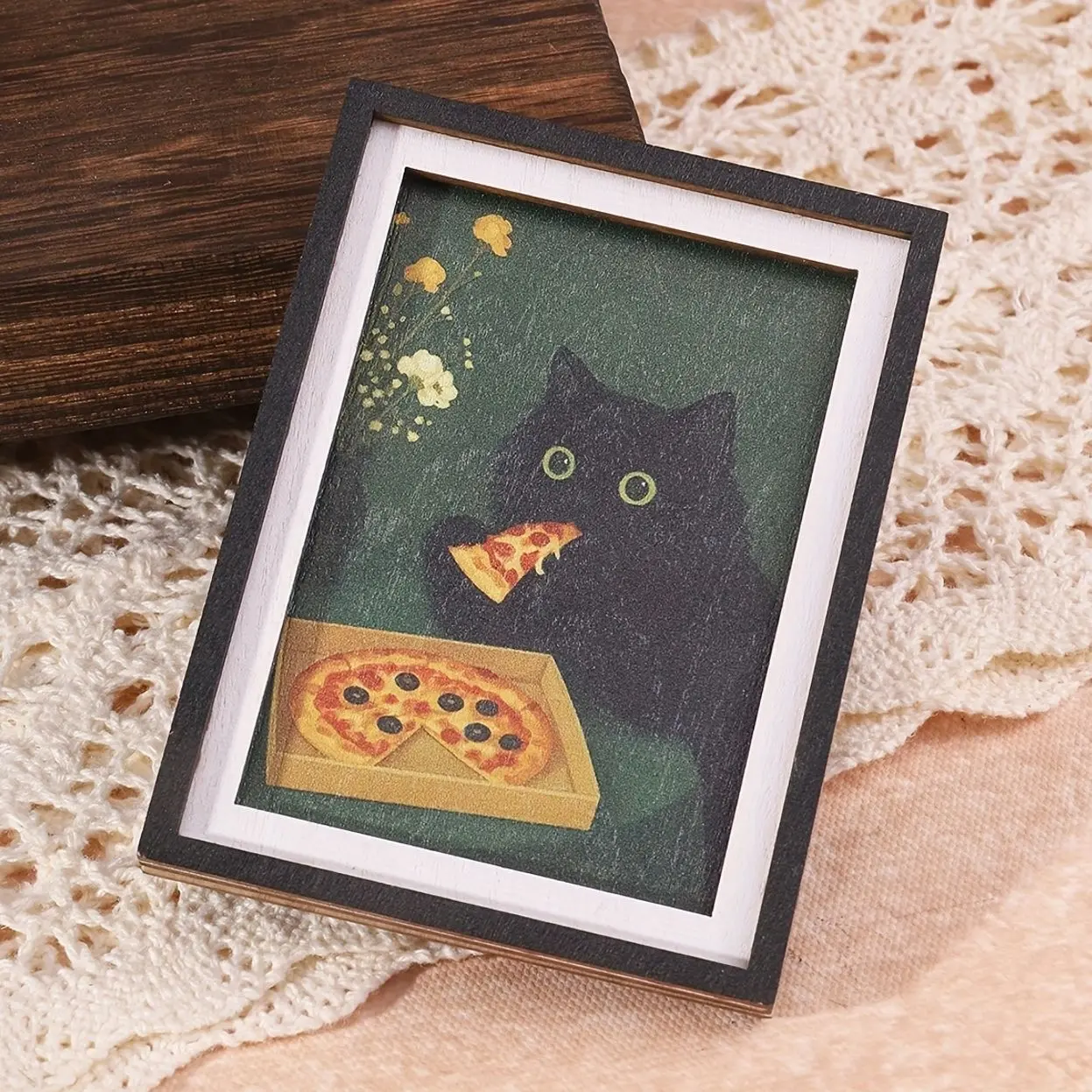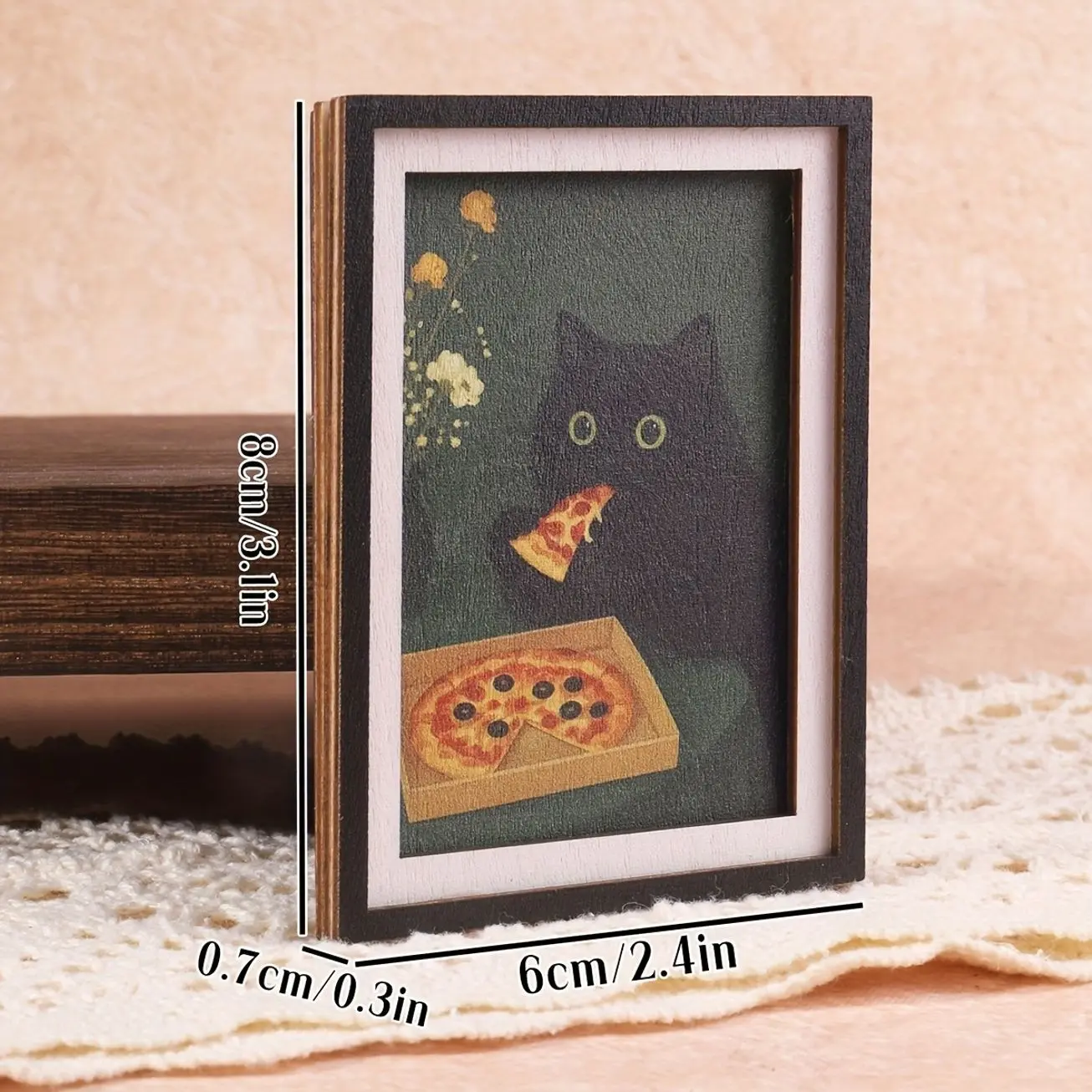 2D ACRYLIC Mini Size Photo Frame Refrigerator Magnet, Fun Home Decoration Prop, Printed with Black Cat and Pizza Patterns, Unique and Exquisite Holiday Gift, Ideal Gift for Home Decoration