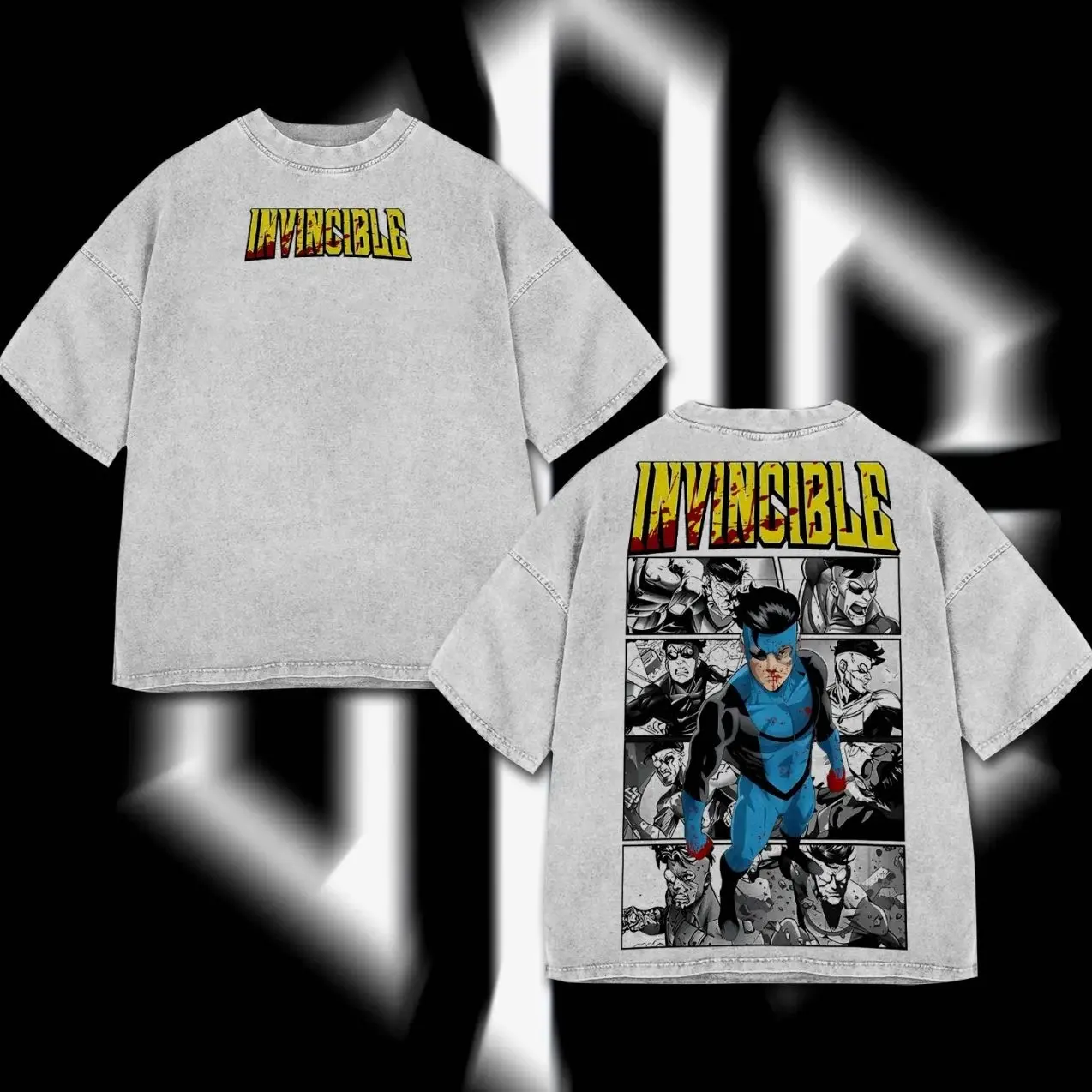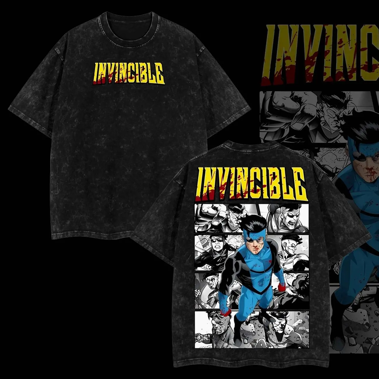 Superstyle Limited Edition Emperor Mark Grayson Invincible War Comic Double Printed Oversize Lightweight Acid Washed Tee TV Series Graphic Tee T-Shirt P40