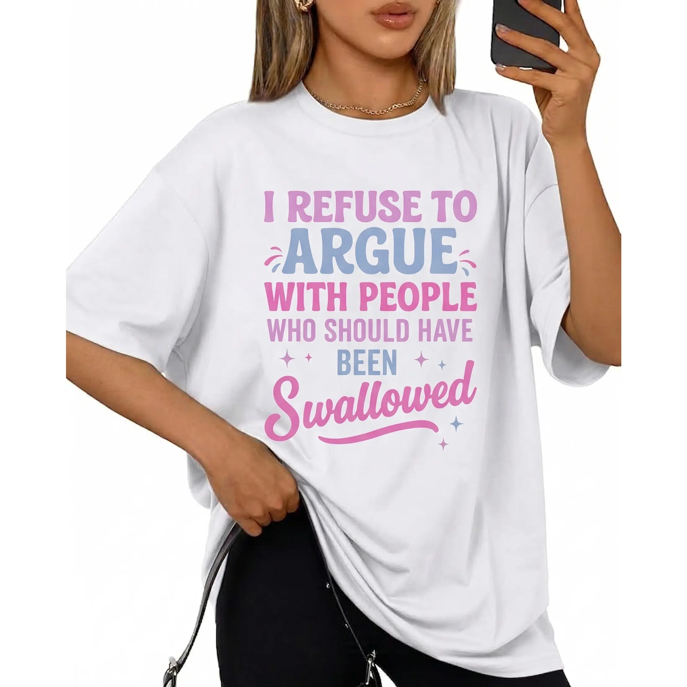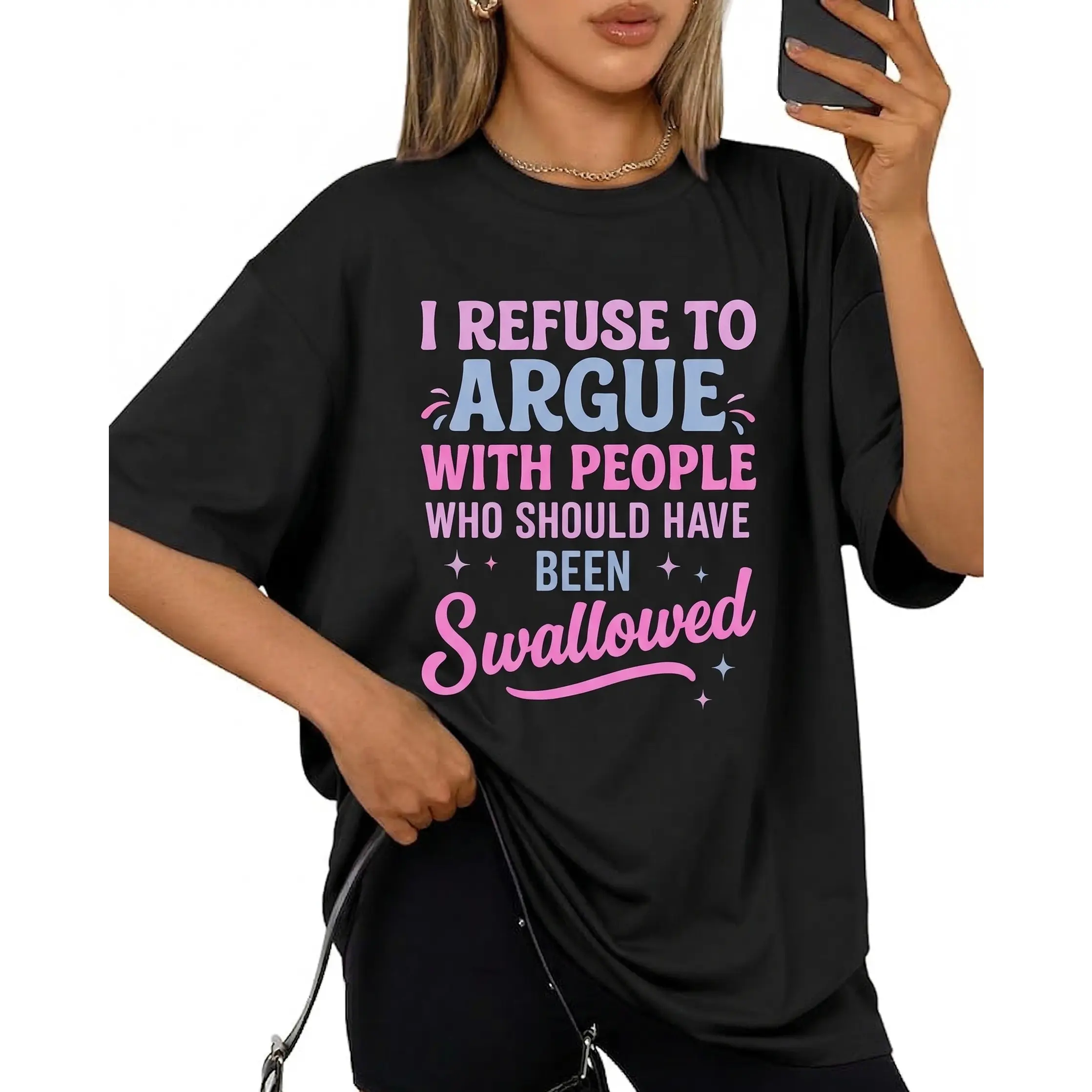 Humorous Sarcastic Tee I Refuse To Argue With People Who Should Have Been Swallowed Bold Statement Casual Short Sleeve Round Neck T Shirt Men's Sports and Leisure ShirtHumorous Sarcastic Tee I Refuse To Argue With People Who Should Have Been Swallowed Bold Statement Casual Short Sleeve Round Neck T Shirt Men's Sports and Leisure Shirt