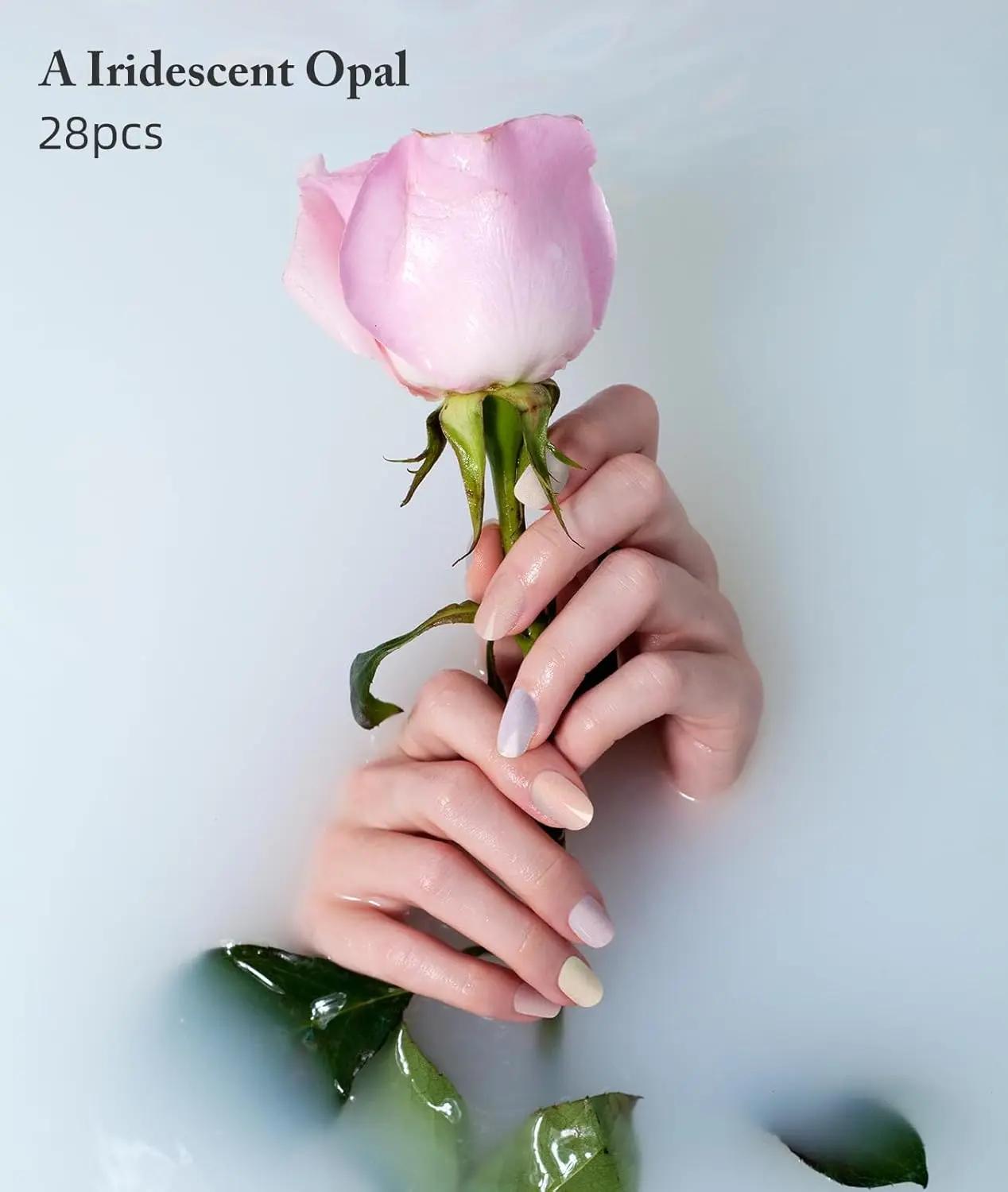 4. Semi Cured Gel Nail Strips, 28 pcs UV Gel Nail Stickers Full Nails Wraps for Women Home DIY Nails Art, UV Light Required(Iridescent Opal)