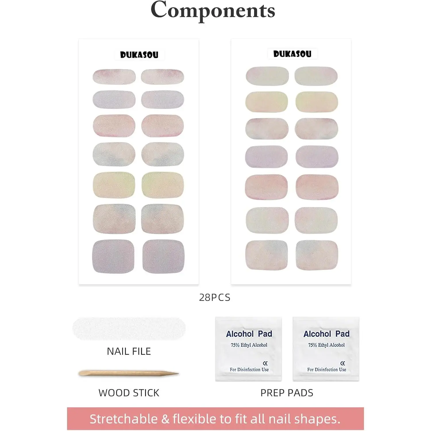 ·Prefect Gel Nail Strips Set: The semi cured gel nail strips included 28pcs gel nail stickers in 14 different sizes, with 2 prep pads, a nail file and a wood stick. Whether your nails are square, round or pointed, you can use our gel nail strips