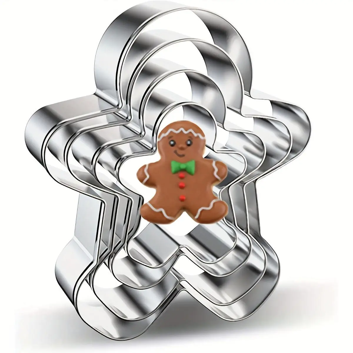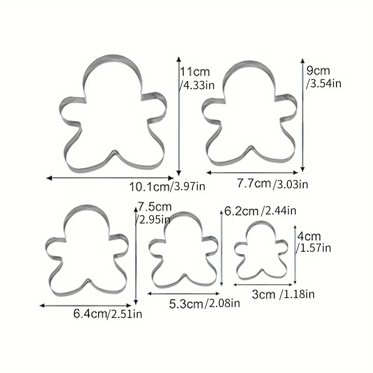 5pcs Christmas Gingerbread for Man Cookie Cutter Set, Including Christmas Tree, Snowflake, and Snowman Stainless Steel Cake Molds, Baking Tools