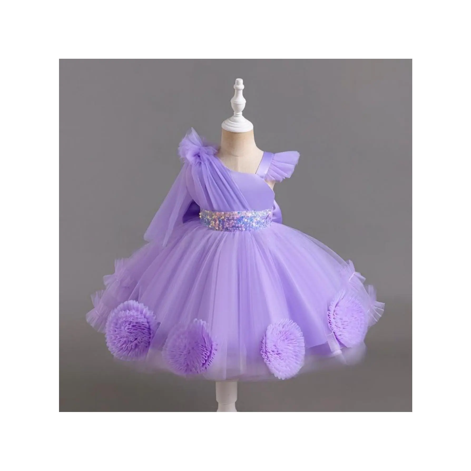 (New)Creative children's princess dress with ball flower design, suitable for little girls' dresses and girls' wedding gowns, for girls under 12 years old(Gift)11