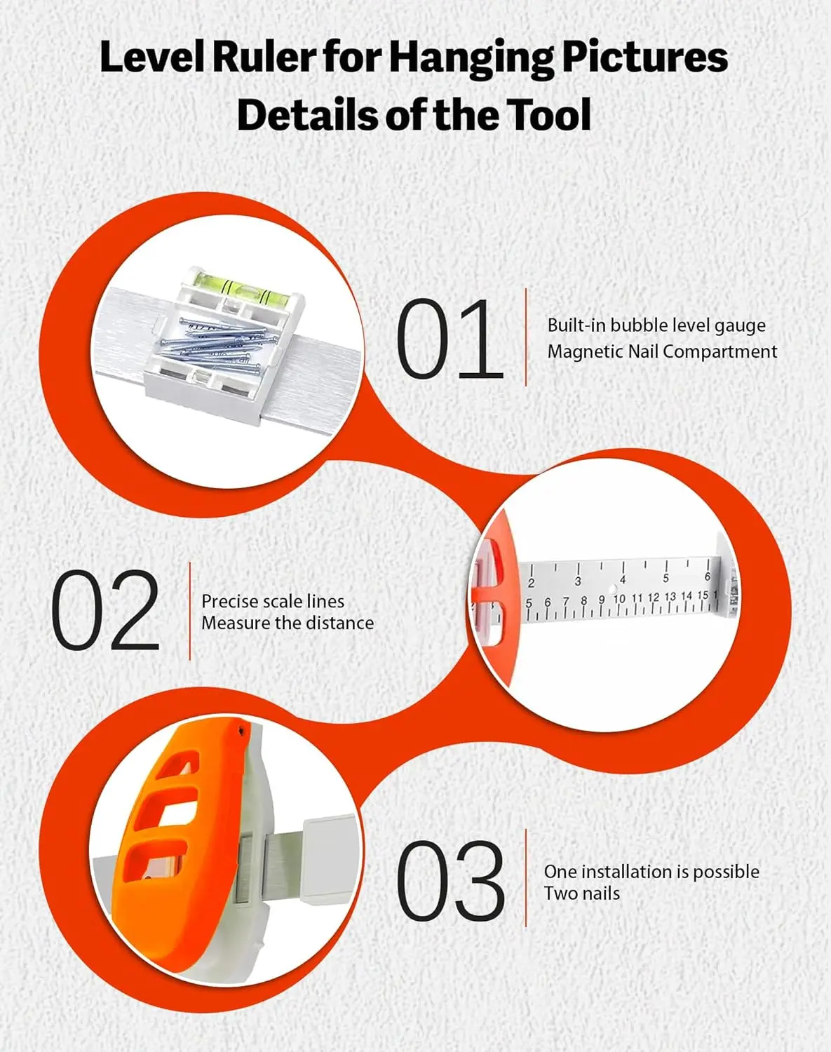 Level Ruler Picture Hanging Tool with Level – Precision Wall Mount Guide for Frames & Artwork, Easy Alignment Hanging Tool with Built-In Level for Home Decor Installation