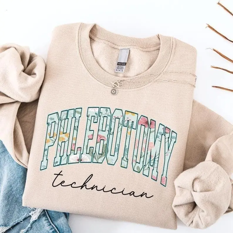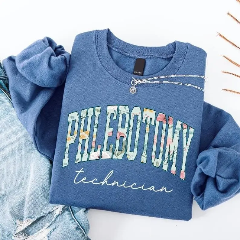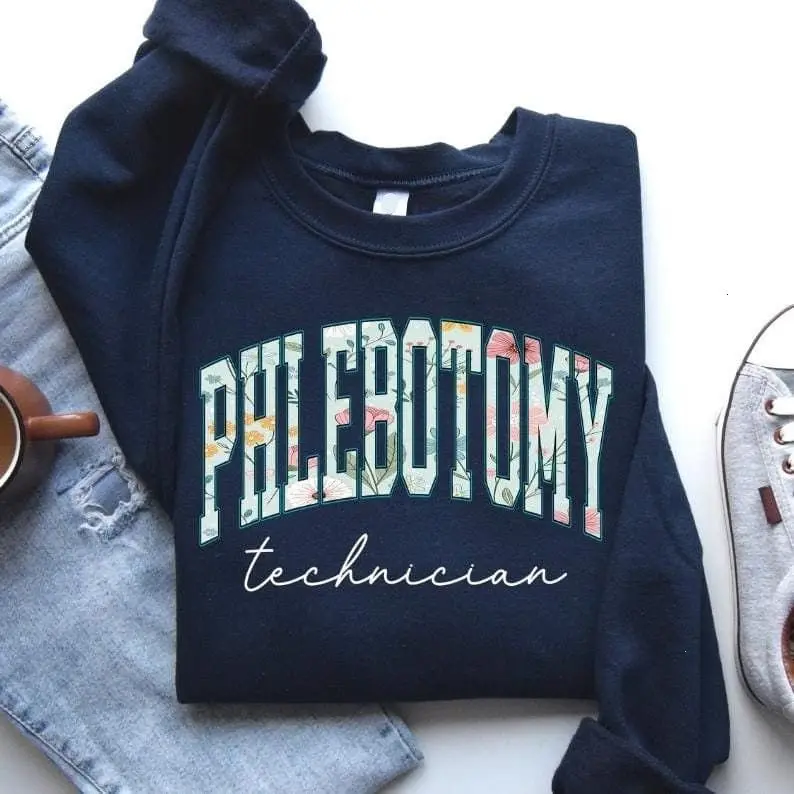 Phlebotomist Patchwork T-Shirt & Sweatshirt, Phlebotomy Technician Gift, Lab Tech Appreciation, Recognition Week Crewneck