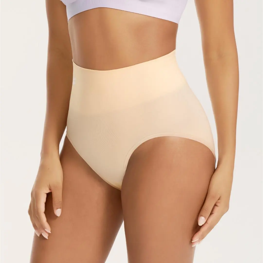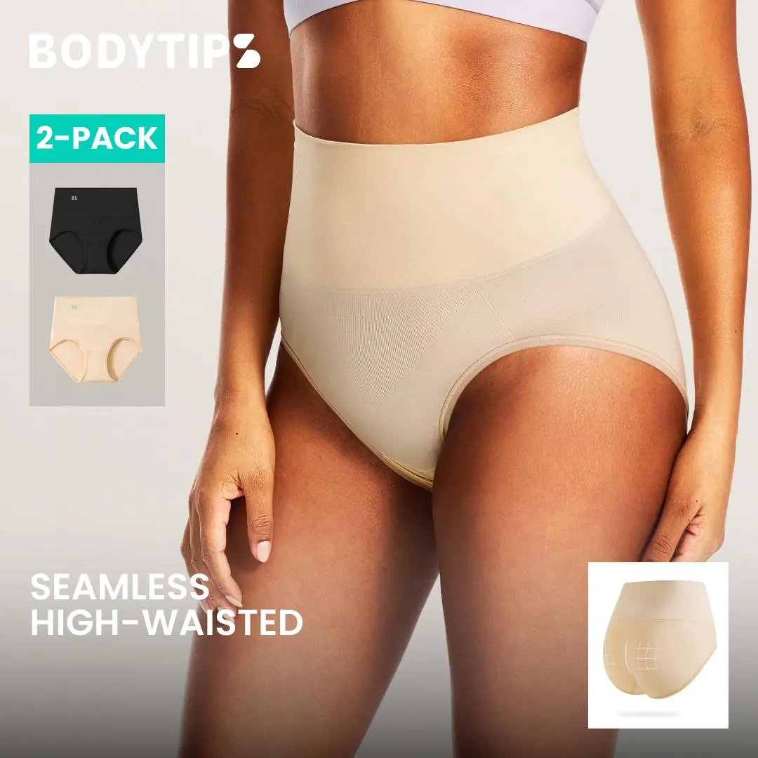 BodyTips 2PCS Spandex High Waisted Panty Light Tummy Control Double Waistband No Rolling Seamless Comfort Full Coverage Design Smooth Fit Underwear Popular Shaping Panties Versatile Briefs For Daily Wear Work Office Home Lounge Casual Outfit All Day Use