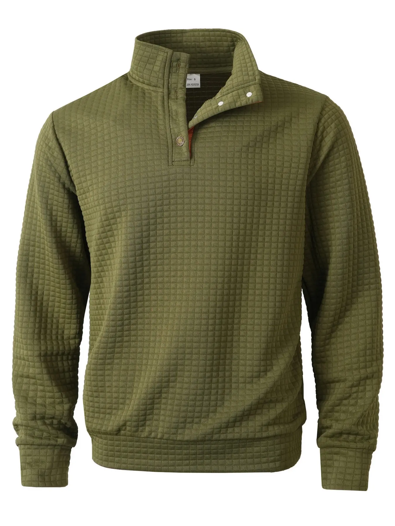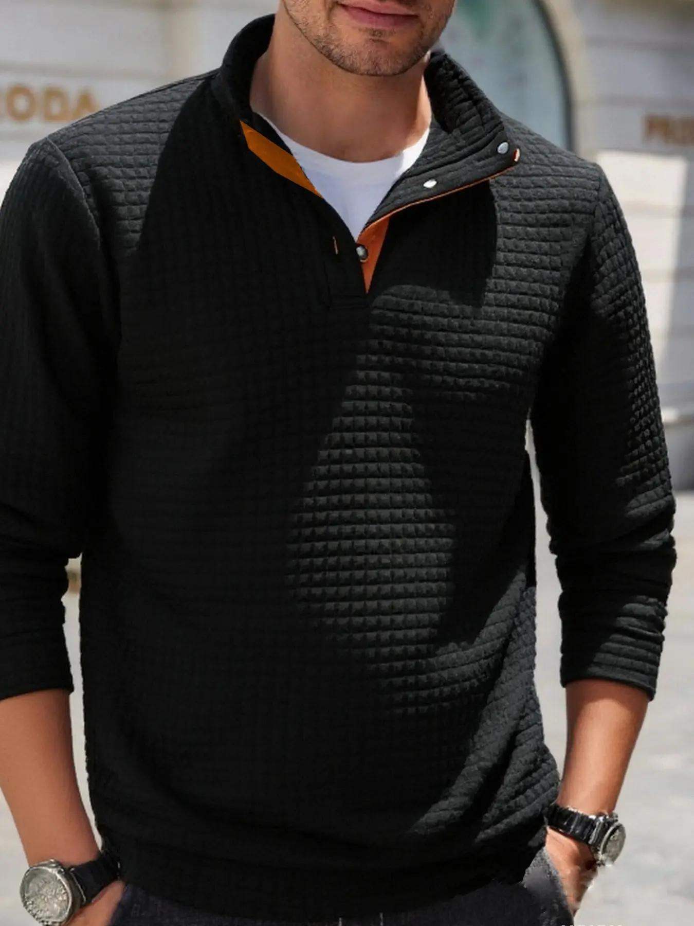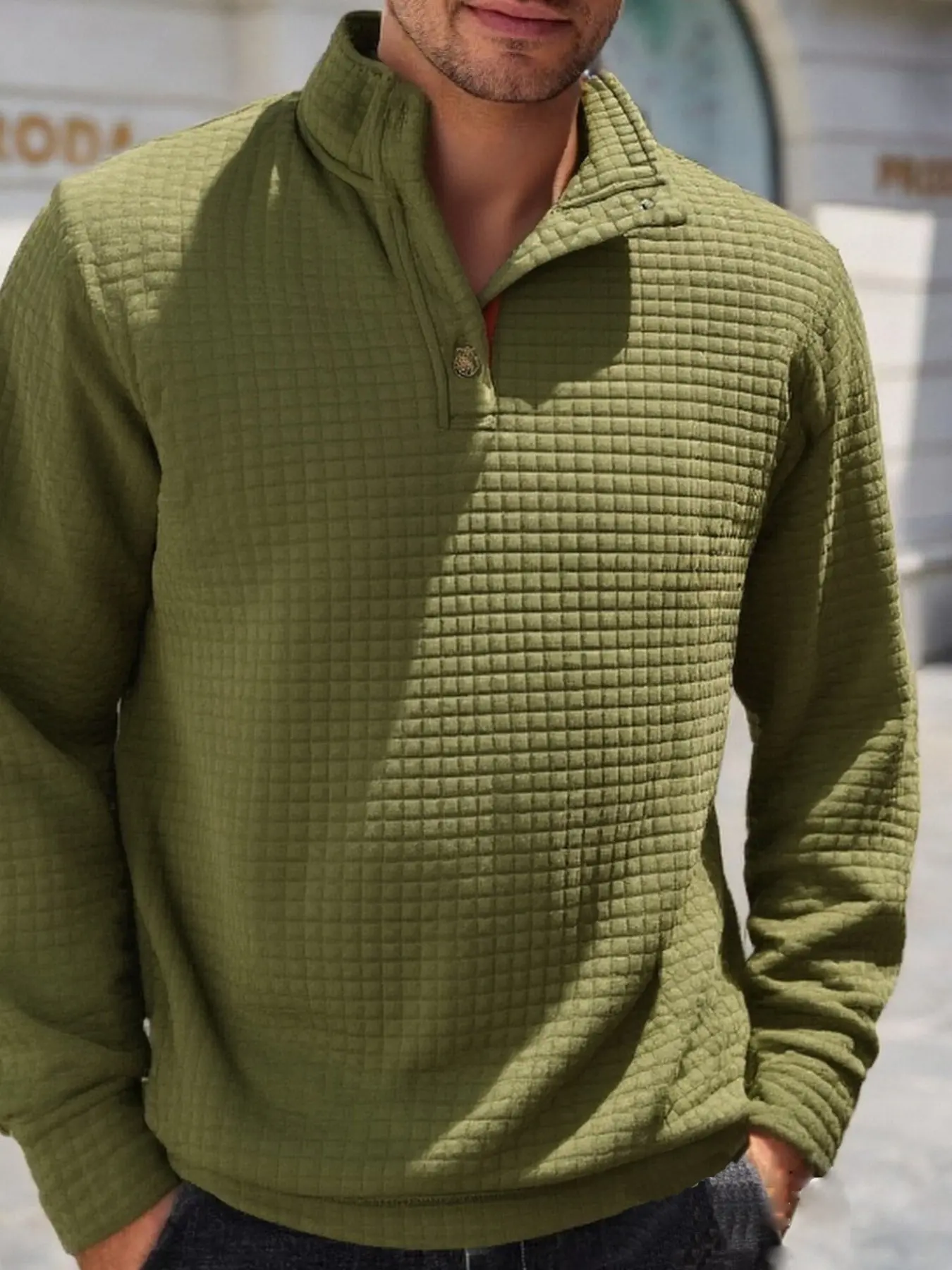 Men's Textured Mesh Knit Quarter-Zip Sportswear, Casual Henry Top with Snap Buttons, Comfortable and Stylish Men's Apparel