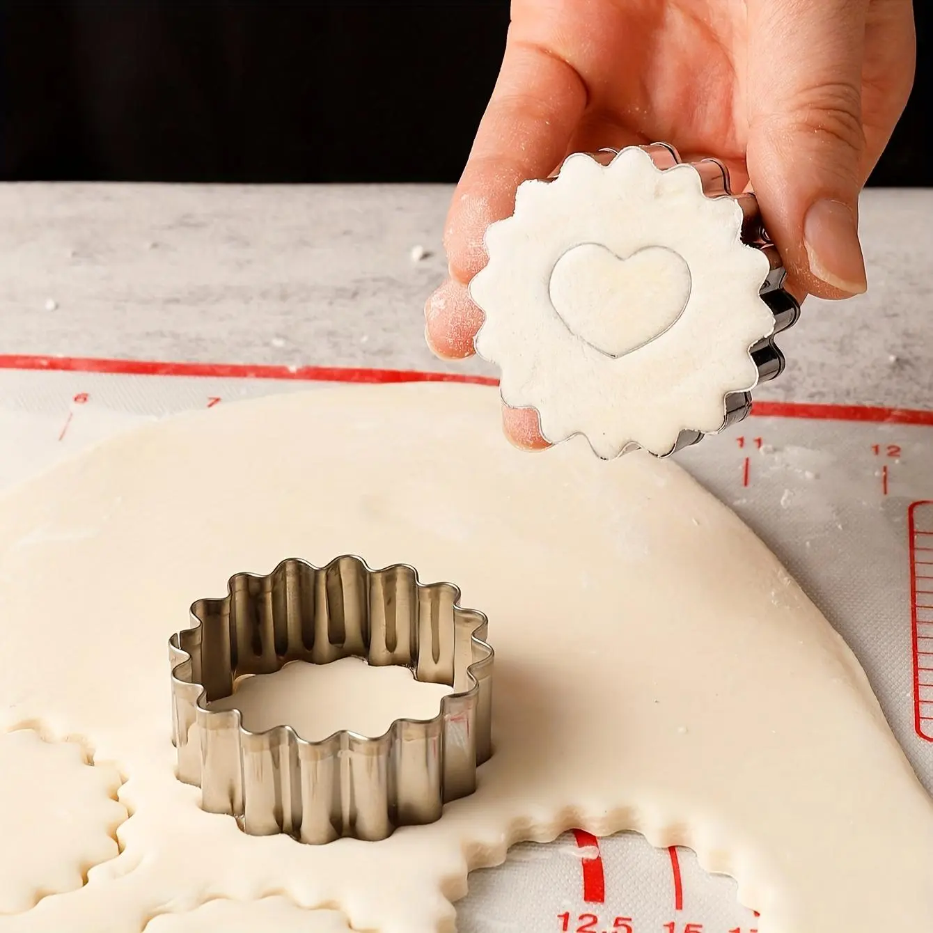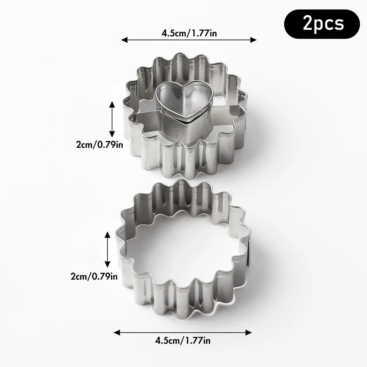 2pcs, Linzer Cookie Cutters, Stainless Steel Pastry Cutter, Sauce Jam Biscuit Molds, Baking Tools, Kitchen Accessories,