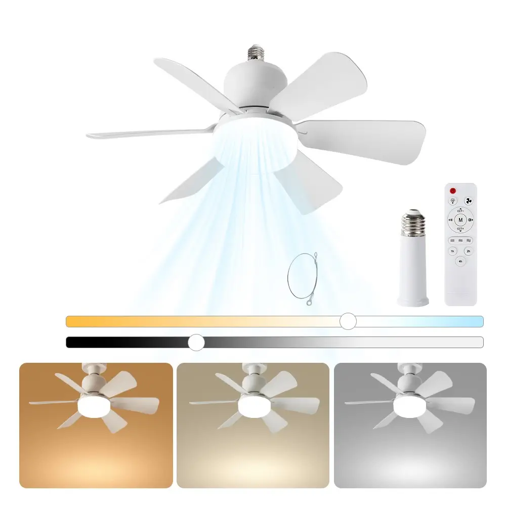 E27 Socket Fan Light Lamp, Adjustable Dimmable Timer, 3 Color Modes 3000k-6500k, Remote Control, Ideal for Bedroom/kitchen/living Room/dining Room/garage/walkway