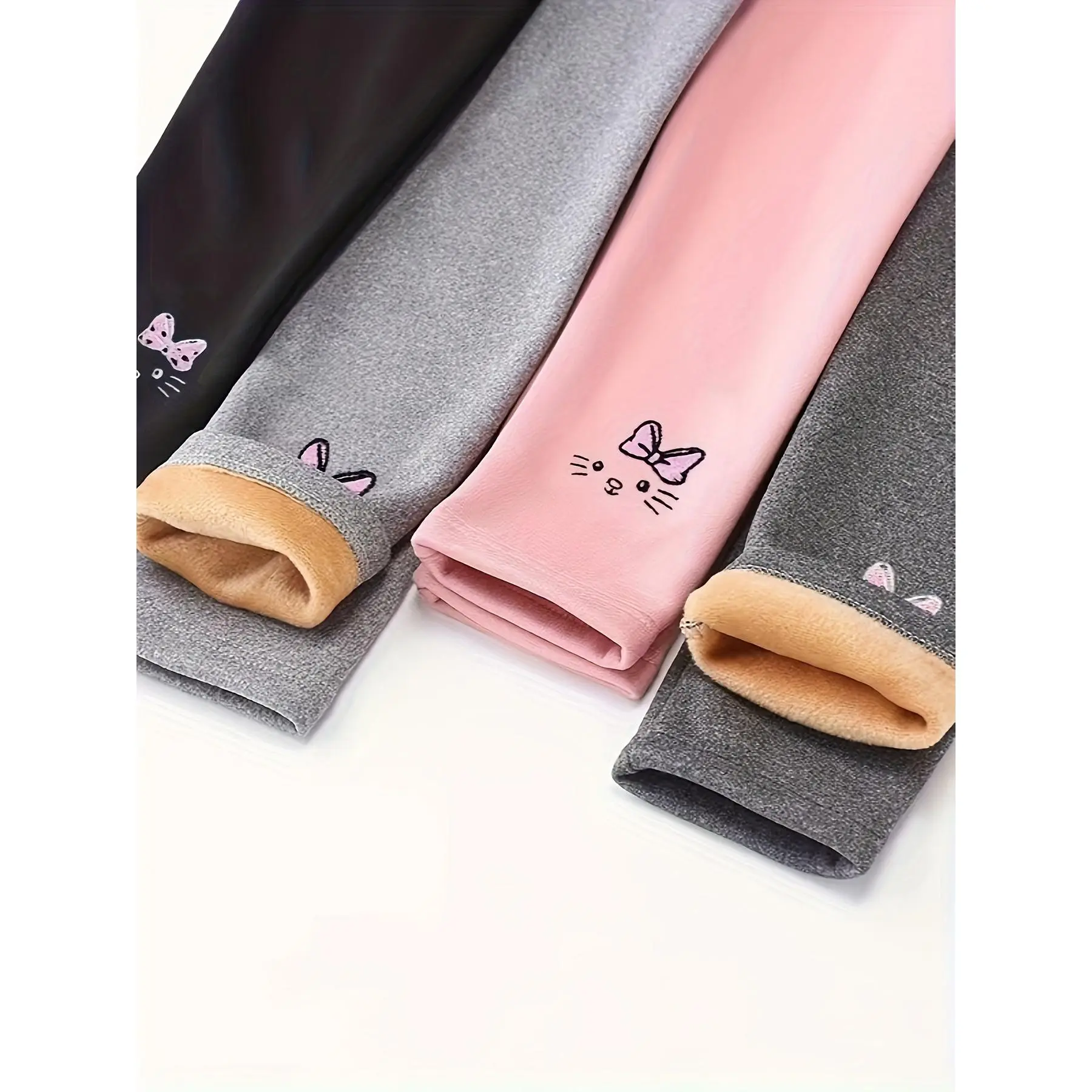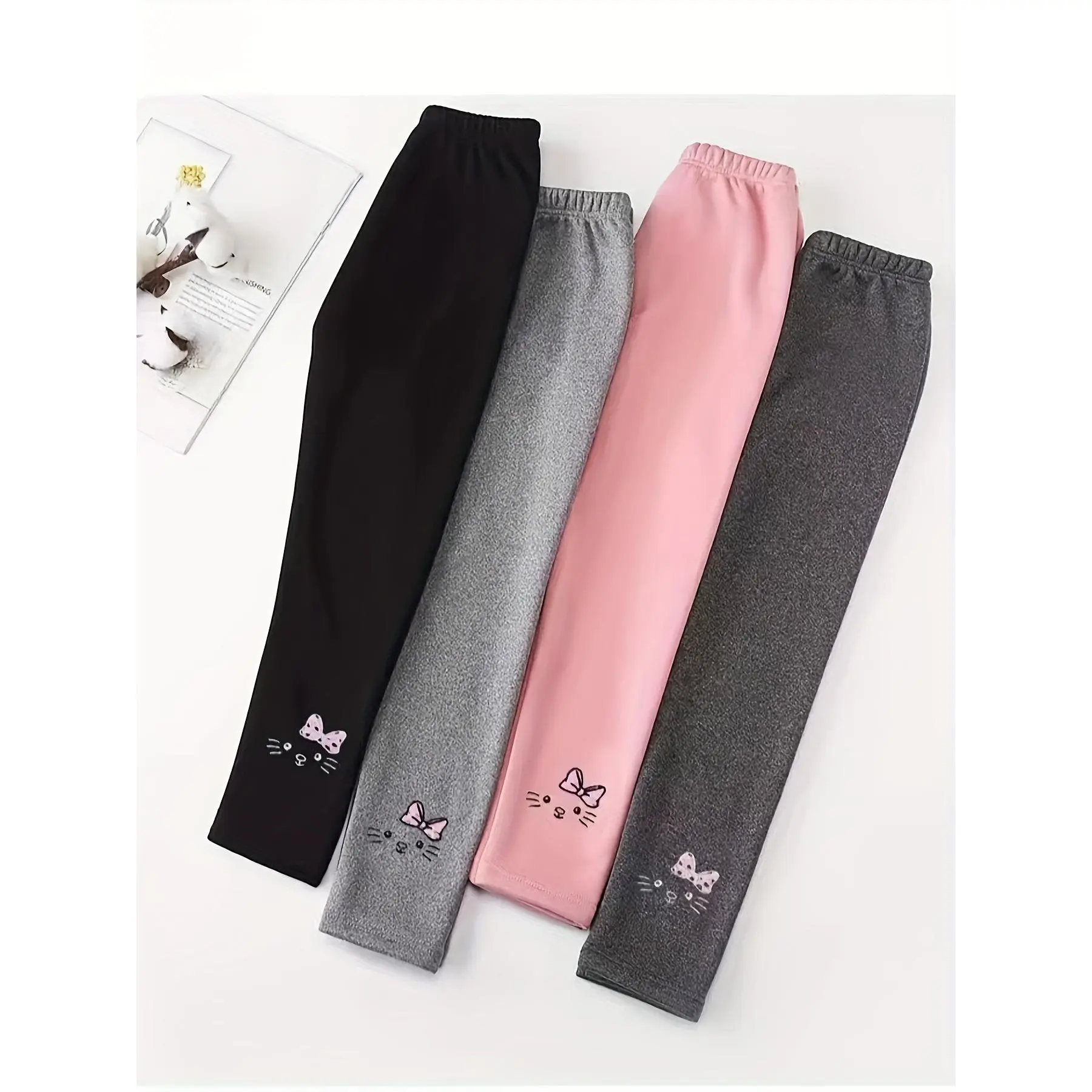 (New)NewGirls' Fleece-Lined Thickened Boneless Warm Base Layer Pants 4pcs Set