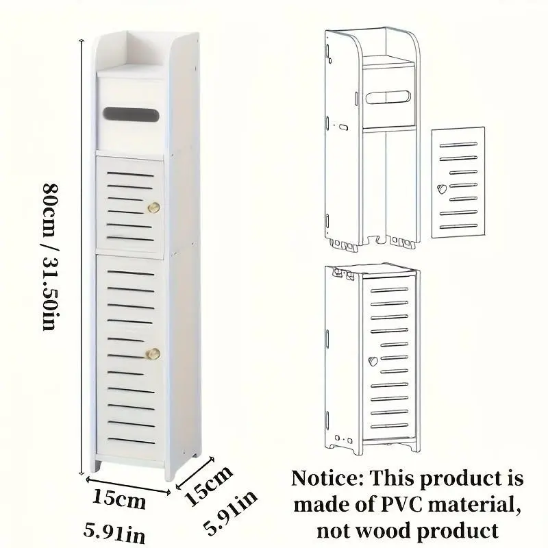Narrow Bathroom Storage Cabinet with Door, Dust-Proof Top Flip Paper Holder, Minimalist Multi-Layer Design, Small Space Toilet Gap Shelf