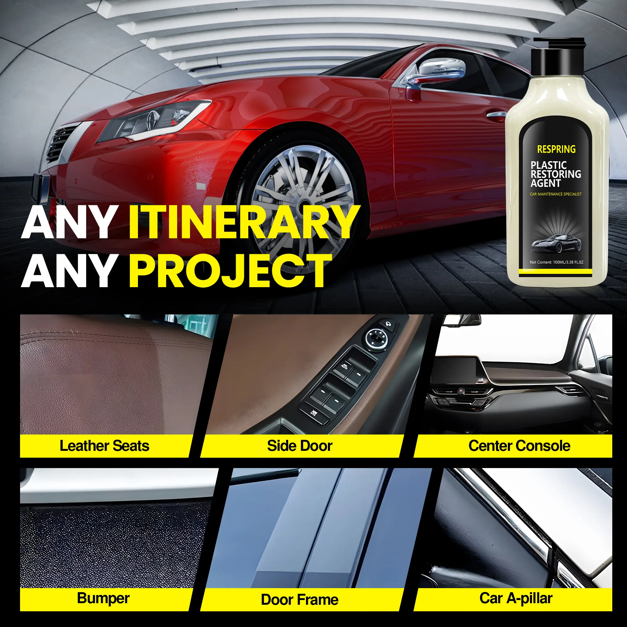 Transform your car's bumper and trim with this Plastic Restoring Agent. Perfect for renewing faded or dull plastic surfaces, it brings back a fresh appearance. Ideal for maintaining your vehicle's aesthetic appeal. 🌟