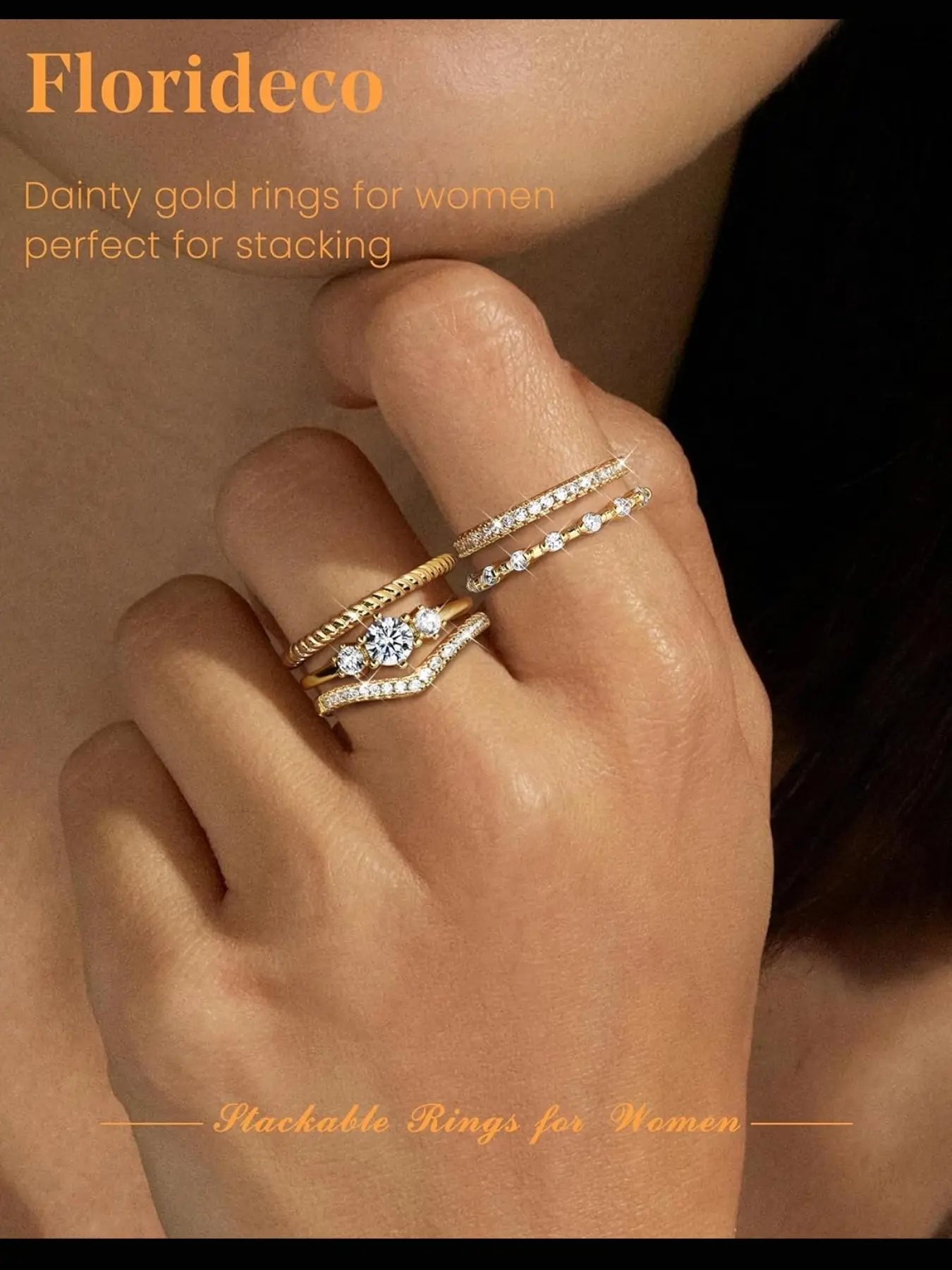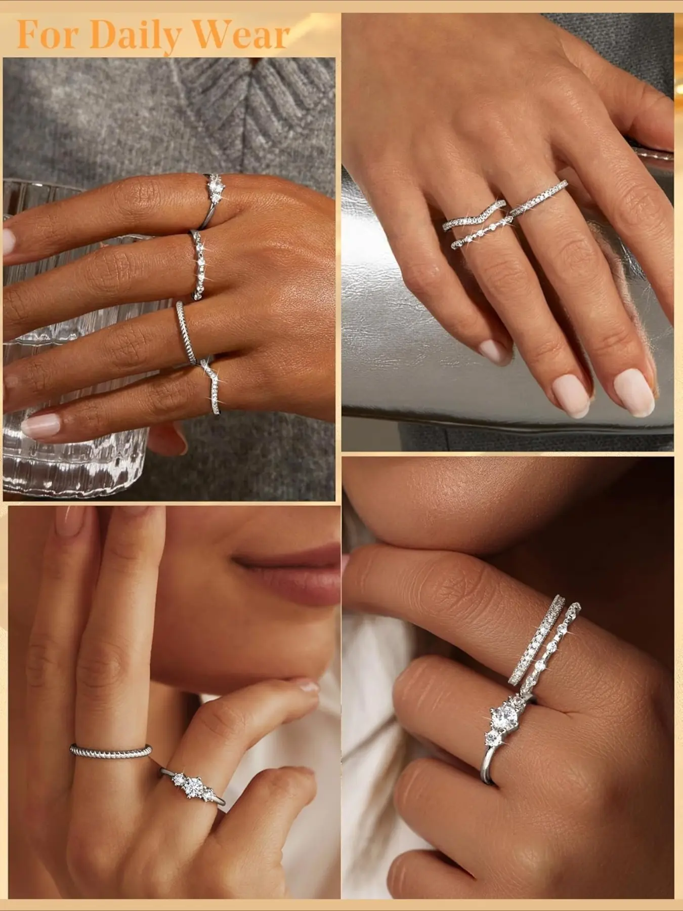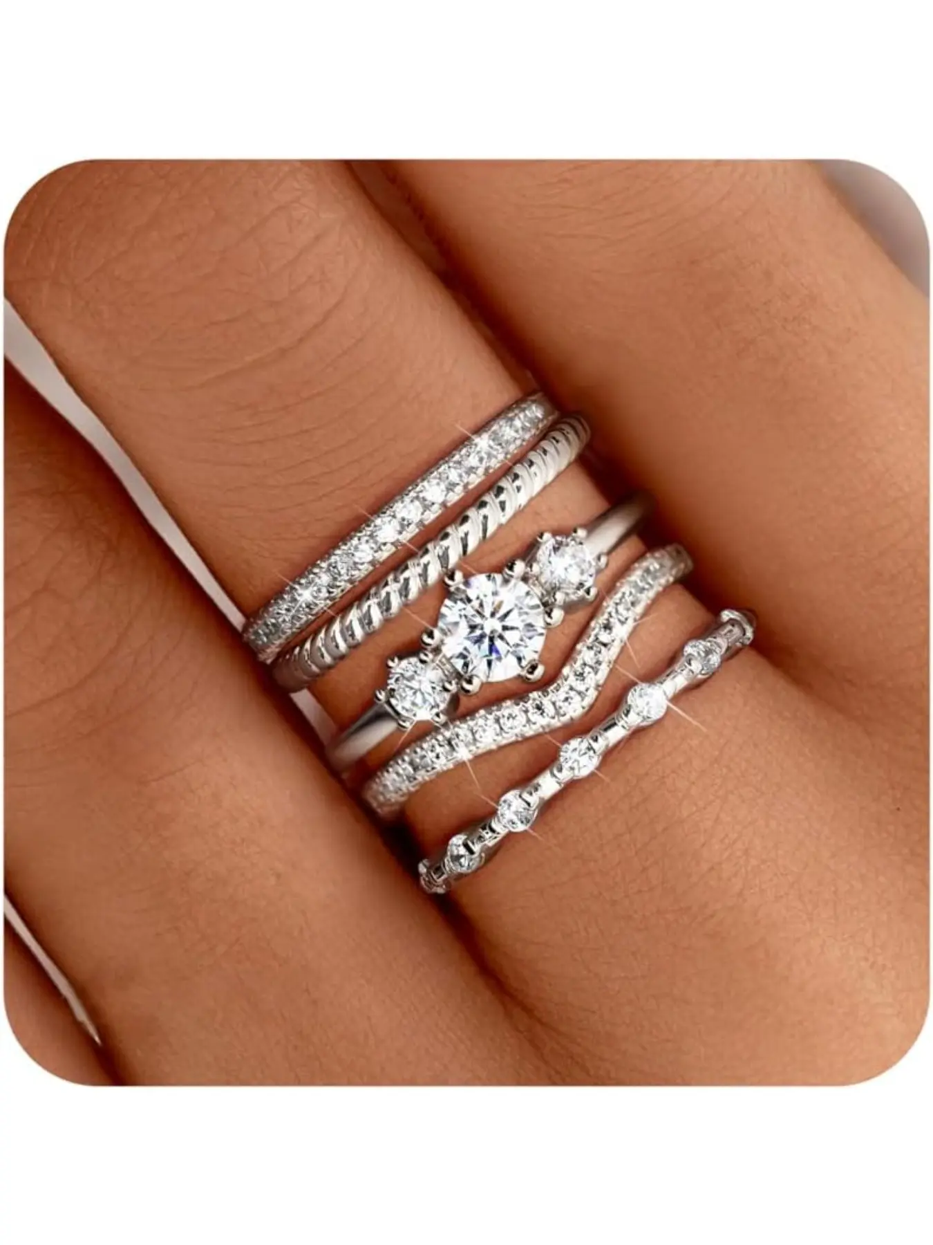 Stackable Rings for Women, Stacking Ring Set, Minimalist Non Tarnish Cubic Zirconia Thumb Ring Set, Dainty Knuckle Ring, Size 5-10