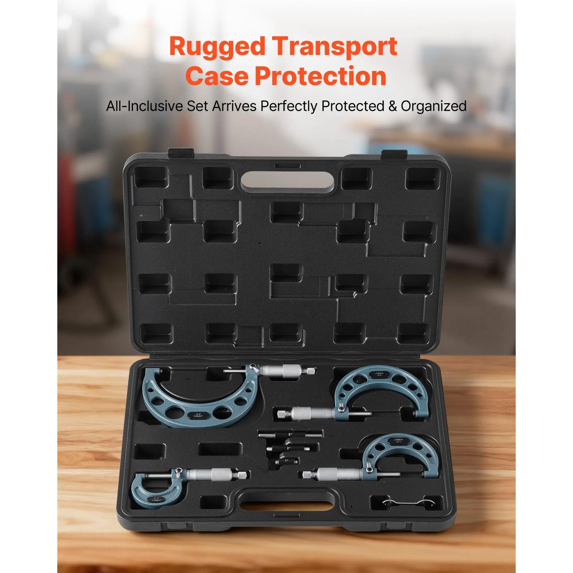 High-Precision Micrometer Set: This micrometer offers ±0.0001 in and ±0.0002 in accuracy, with four micrometers Caping 0-4 in and three calibration rods for verification.Ideal for measuring engine parts or precision components with consistent resultsEasy-to-Read & Intuitive Operation: This micrometer set features clear sleeve markings and a zero-adjust wrench, making dynamic adjustments simple.The smooth spindle ensures easy sliding for quick part positioning, maintaining measurement accuracyPrecise Performance: Built with a carbide-tipped measuring face, this digital micrometer ensures long-lasting accuracy and wear-resistance.The lock nut avoids slippage, while the ratchet thimble offers smooth control and stable precision over timeVersatile for Multiple Tasks: This micrometer measuring tool features a solid metal frame for wear resistance and lasting stability.Ideal for measuring outer diameters of pipes, metal sheets, and other parts in machining or precision workComplete Set Included: This micrometer digital comes with a dedicated hard case containing four micrometers, three calibration rods, a wrench, and instructions.Keeps tools organized and portable, ready for precise measurements right out of the boxVEVOR 4 PCS Micrometer Set, 0-1"/1-2"/2-3"/3-4" Machinist Outside Micrometer, Ultra-Precision 0.0001 Accuracy, Professional Machinist Tools with Protective Case, for Metalworking & Engineering