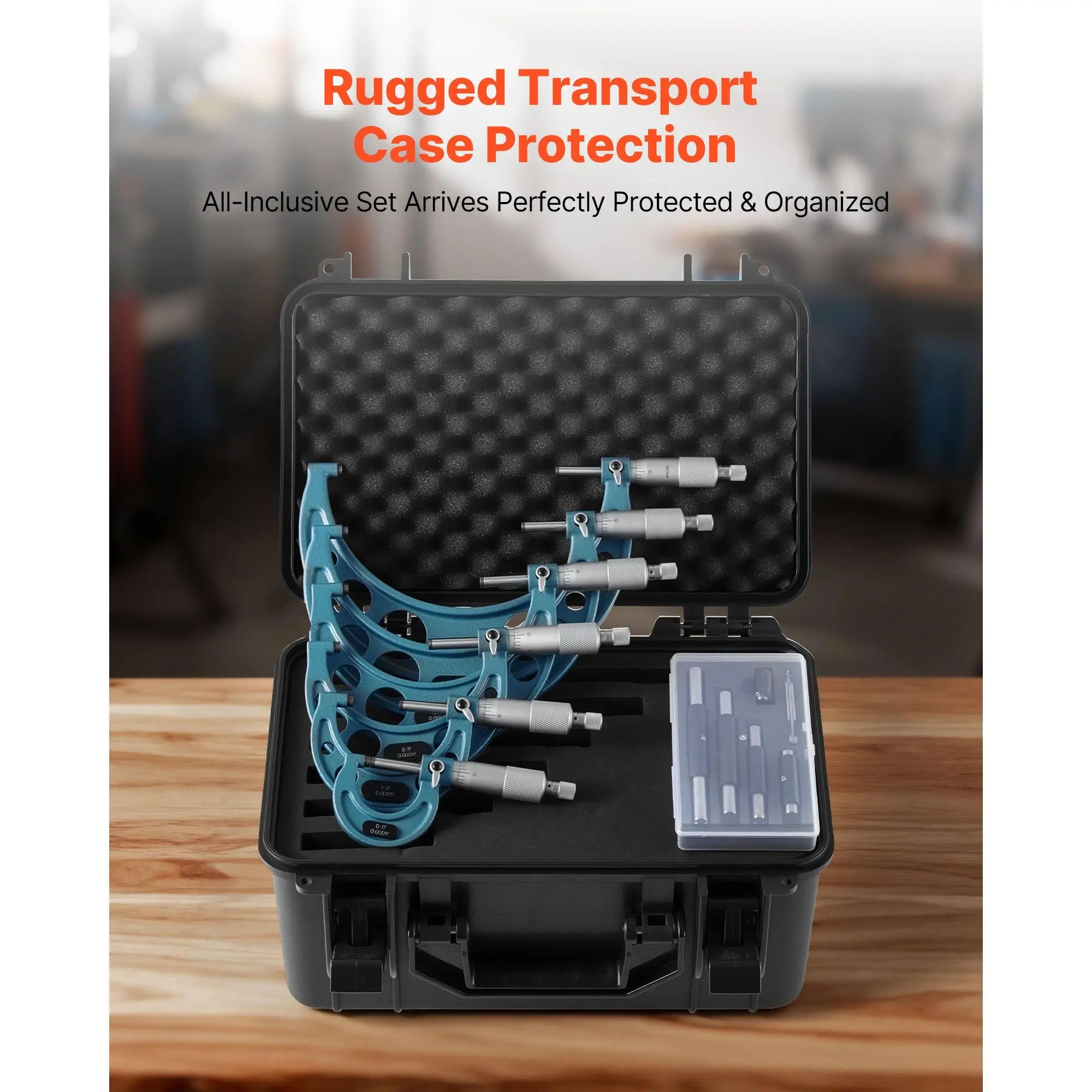 High-Precision Micrometer Set: This micrometer set offers ±0.0001 in, ±0.0002 in, and ±0.0003 in accuracy, with six micrometers Caping 0-6 in and five calibration rods for verification.Ideal for reliable measuring engine or precision componentsEasy-to-Read & Intuitive Operation: This micrometer set features clear sleeve markings and a zero-adjust wrench, making dynamic adjustments simple.The smooth spindle ensures easy sliding for quick part positioning, maintaining measurement accuracyPrecise Performance: Built with a carbide-tipped measuring face, this digital micrometer ensures long-lasting accuracy and wear-resistance.The lock nut avoids slippage, while the ratchet thimble offers smooth control and stable precision over timeVersatile for Multiple Tasks: This micrometer measuring tool features a solid metal frame for wear resistance and lasting stability.Ideal for measuring outer diameters of pipes, metal sheets, and other parts in machining or precision workComplete Set Included: This micrometer digital comes with a dedicated hard case containing six micrometers, five calibration rods, wrenches, and instructions.Keeps tools organized and portable, ready for precise measurements right out of the boxVEVOR 6 PCS Micrometer Set, 0-1"/1-2"/2-3"/3-4"/4-5"/5-6" Machinist Outside Micrometer, Precision 0.0001 Accuracy, Professional Machinist Tools with Protective Case, for Metalworking & Engineering