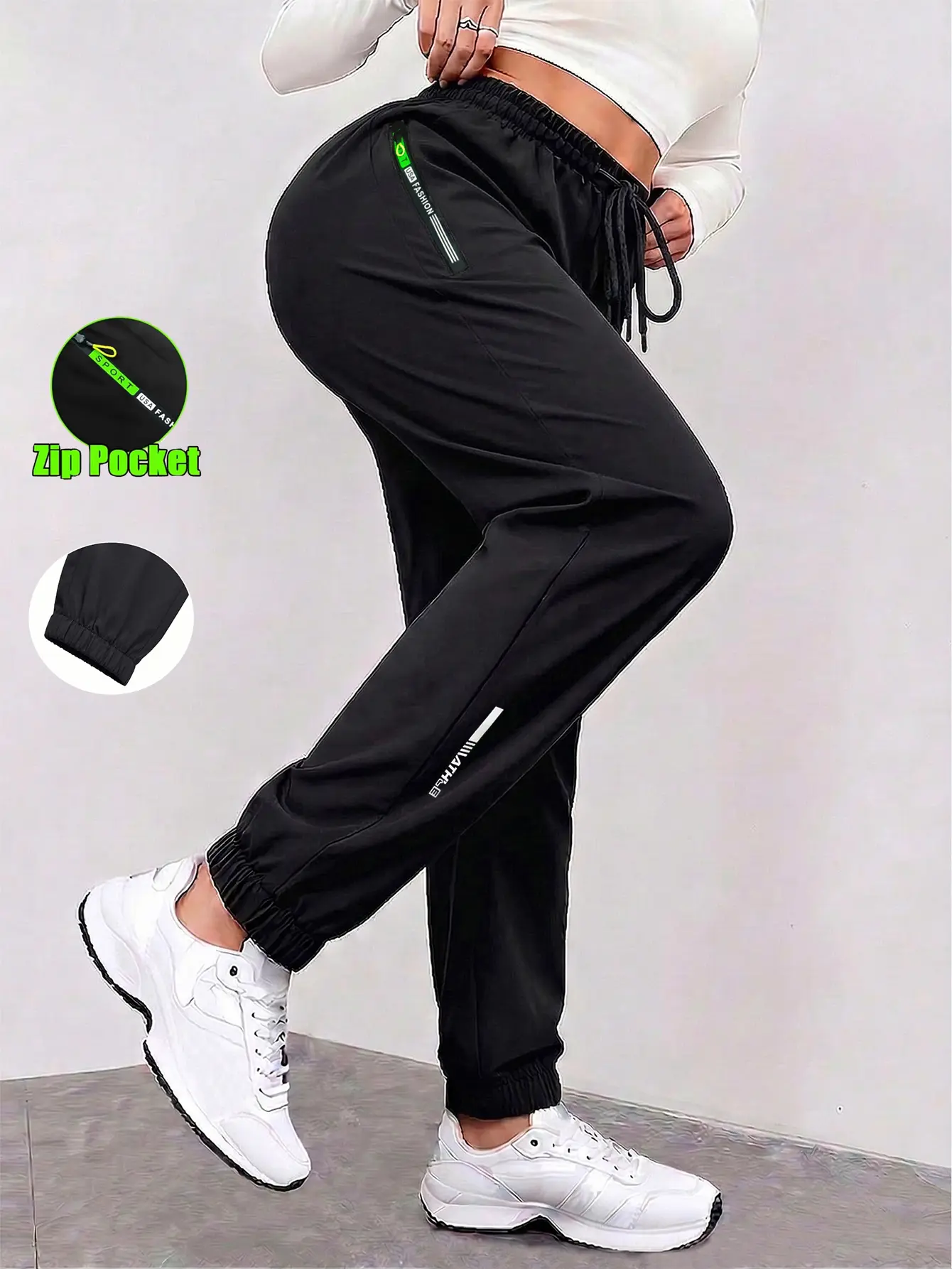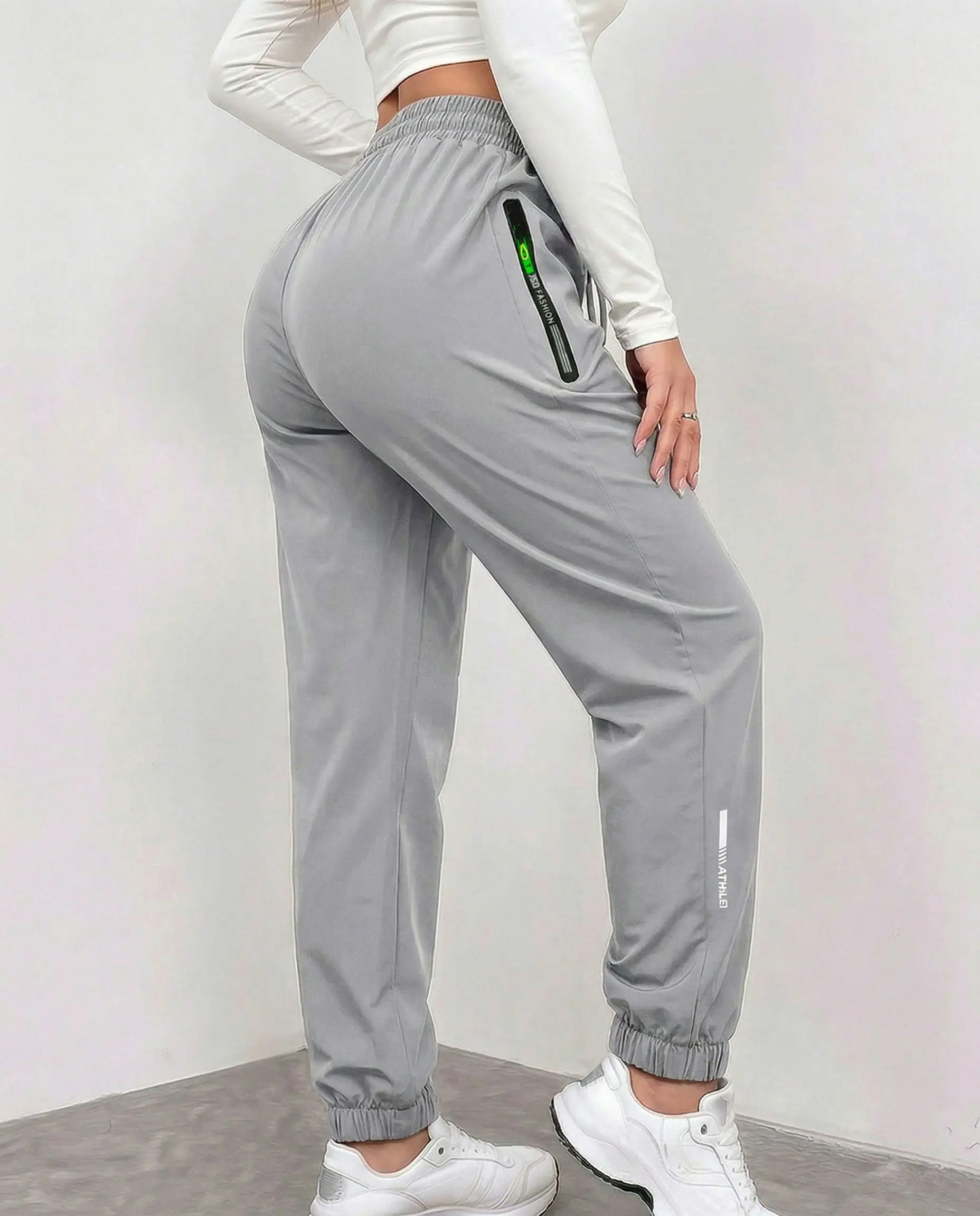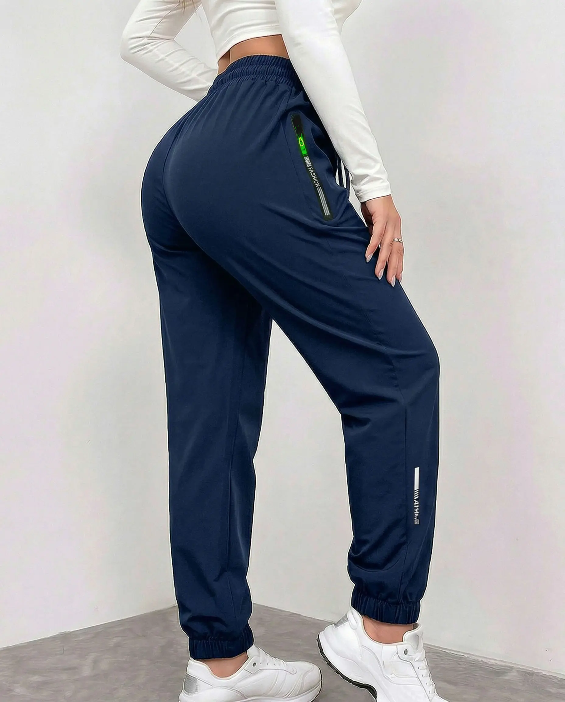 Set of 3 women’s summer cargo pants with zippered pockets, featuring a stylish large pocket design and an elastic waistband; casual outdoor/daily long slim-fit cuffed pants.