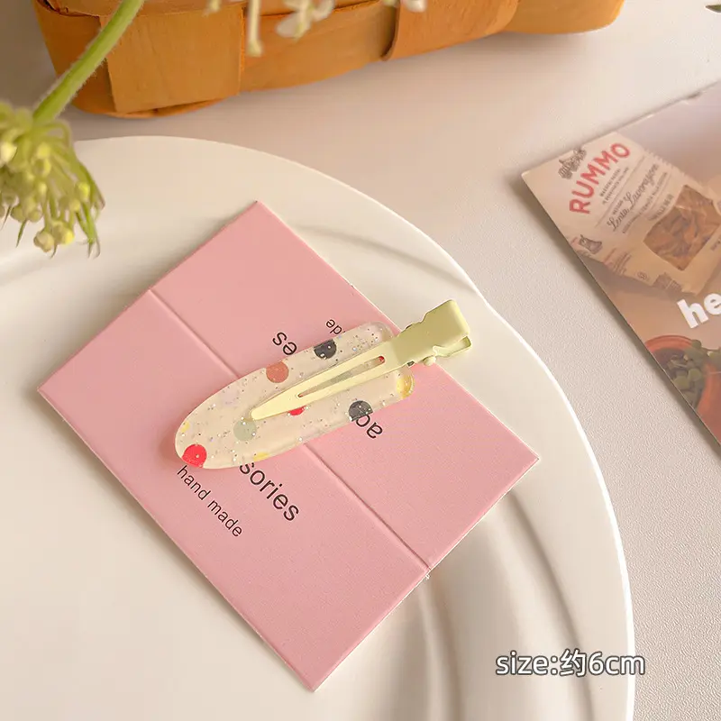 Blue striped and colorful polka dot hair clip set