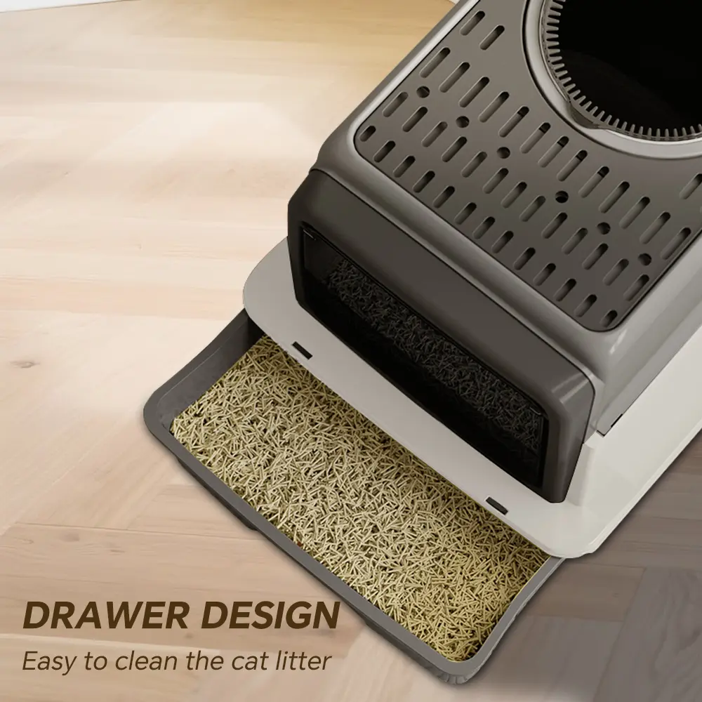 Extra-Large Enclosed Cat Litter Box with Foldable Drawer - Deep, Odor-Resistant, and Splash-Proof for Happy, Healthy Cats flip cover