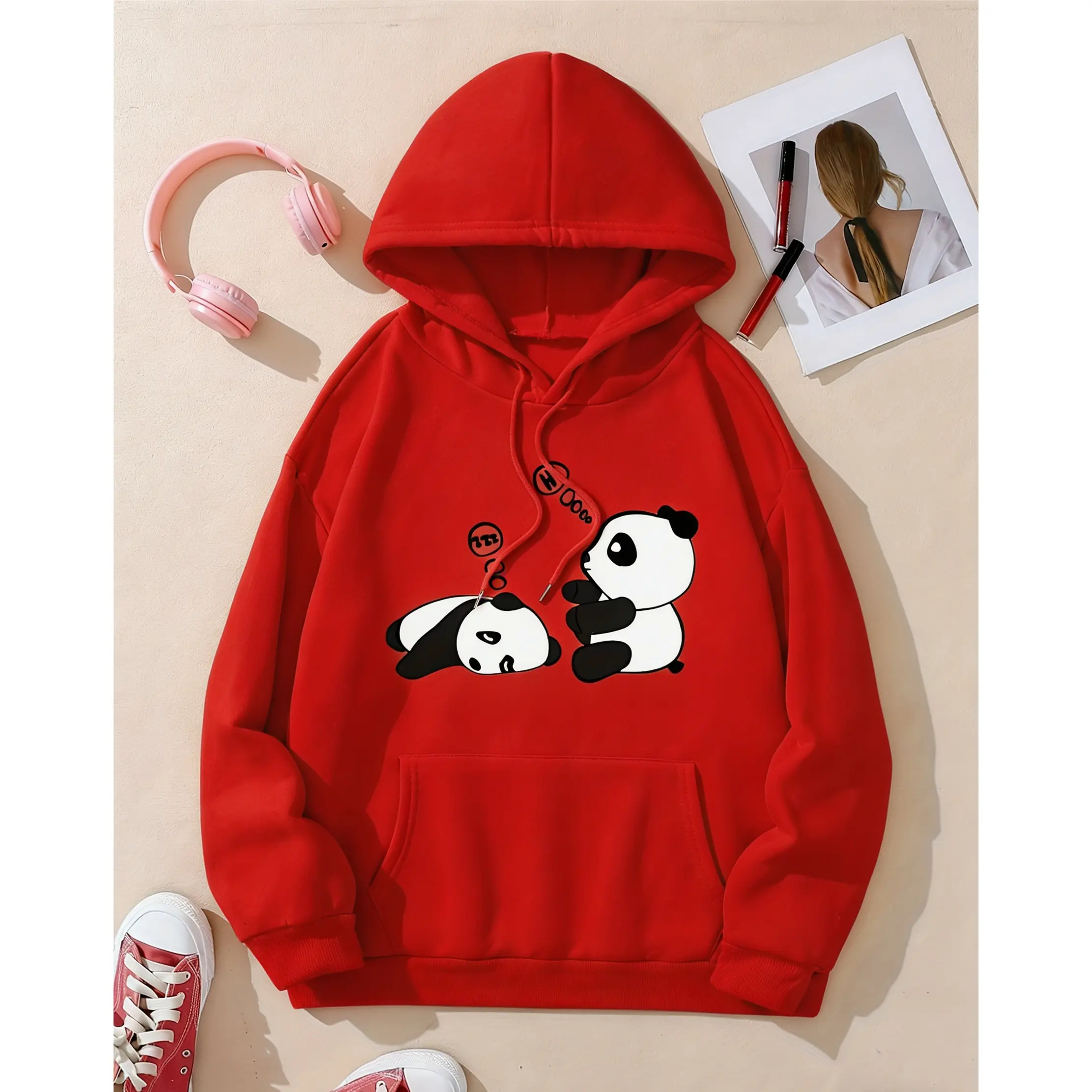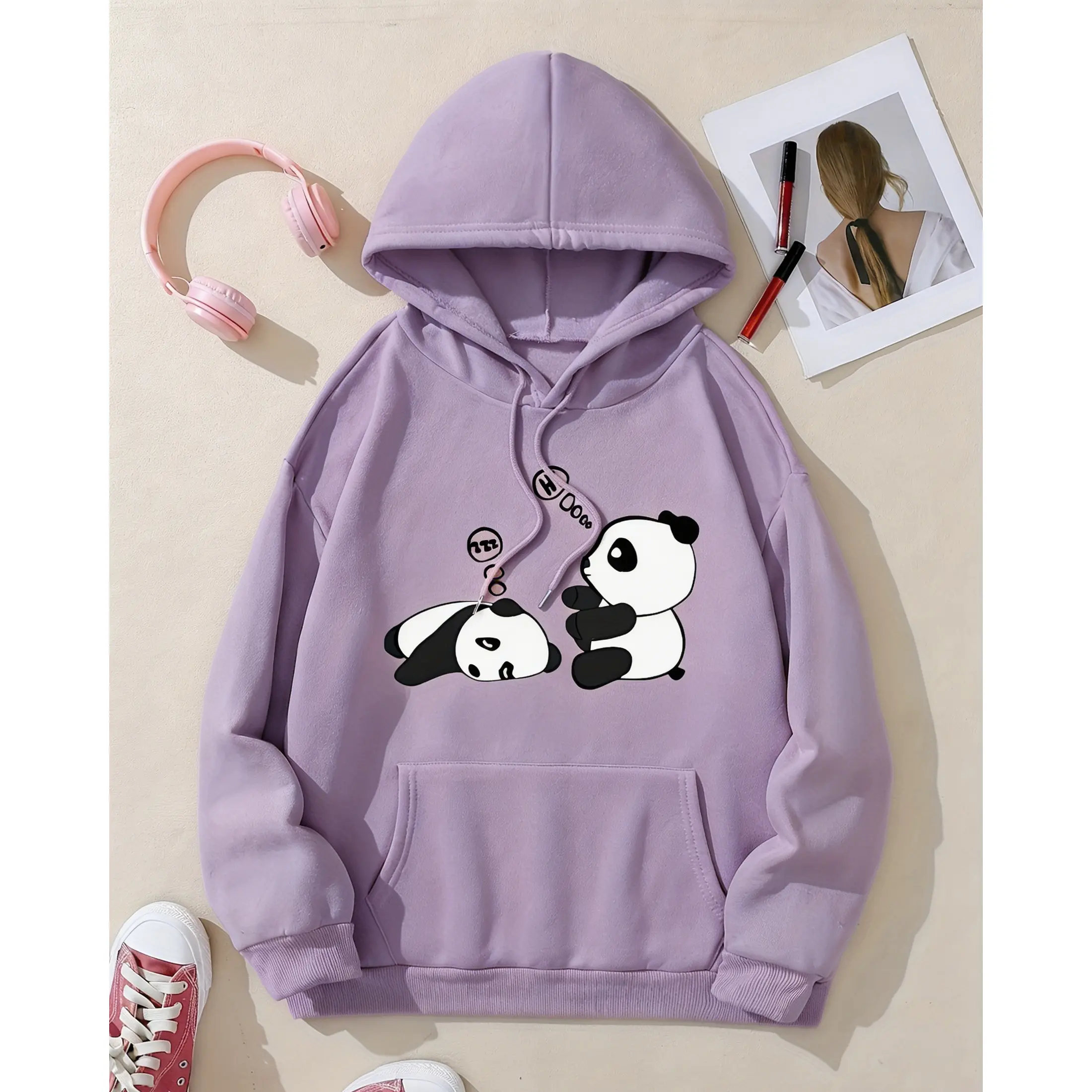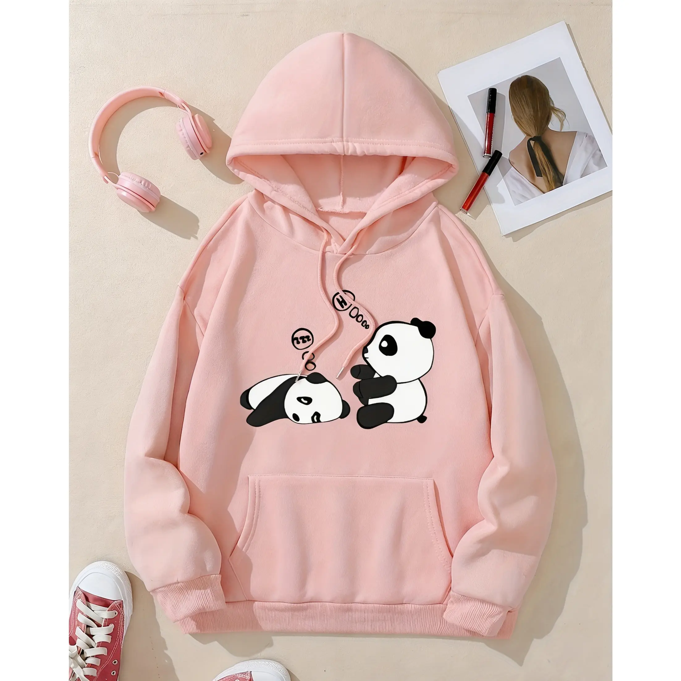 Women's Casual Fashion Hoodie with Sleepy Panda Print