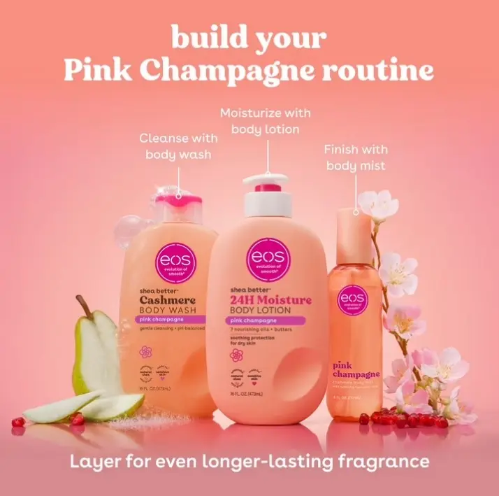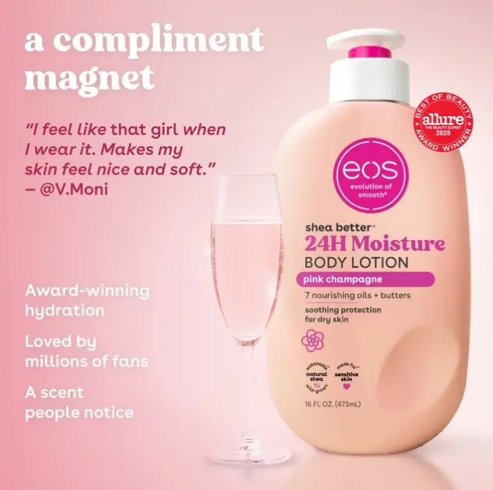 eos Shea Better Body Lotion for Dry Skin, Pink Champagne, 16 fl oz