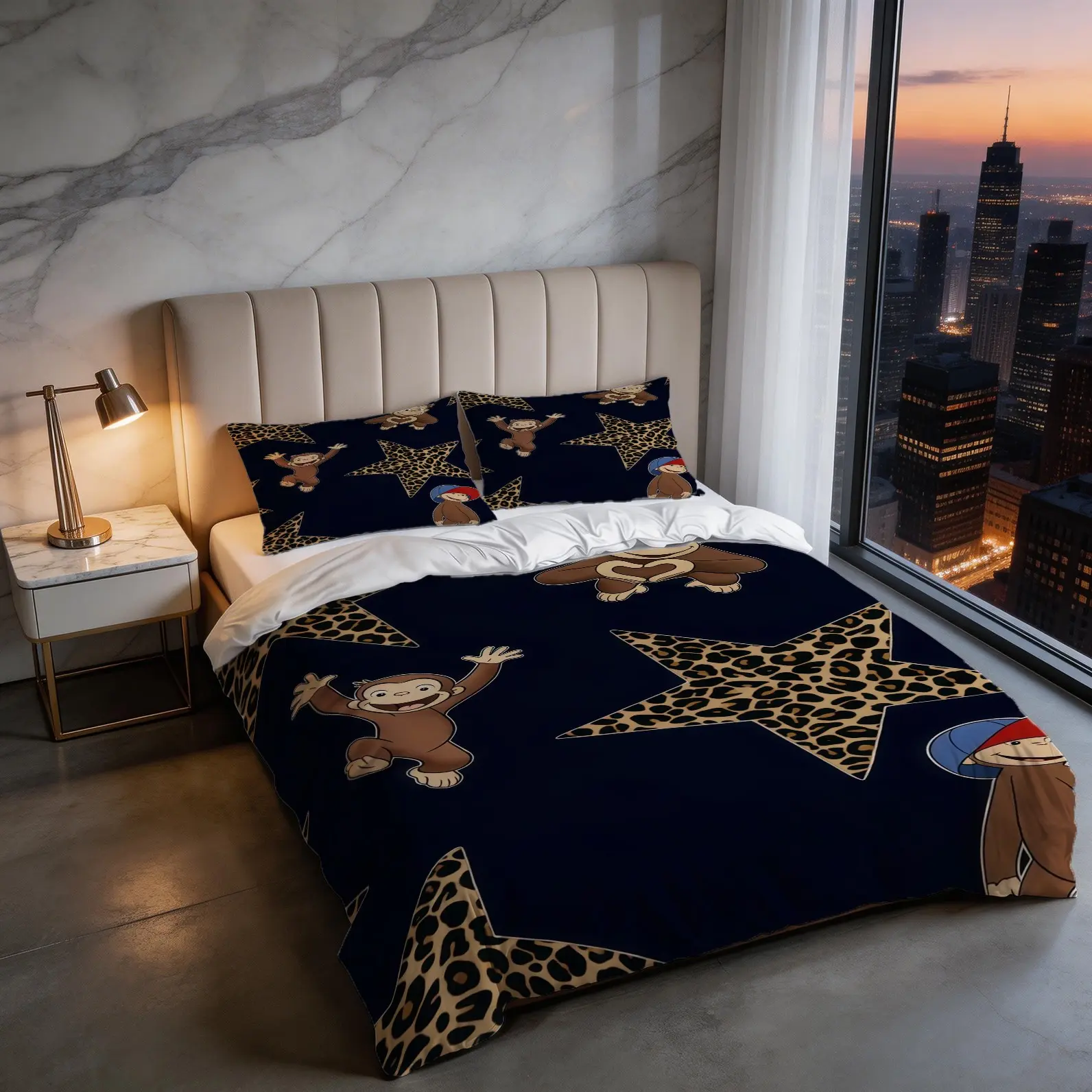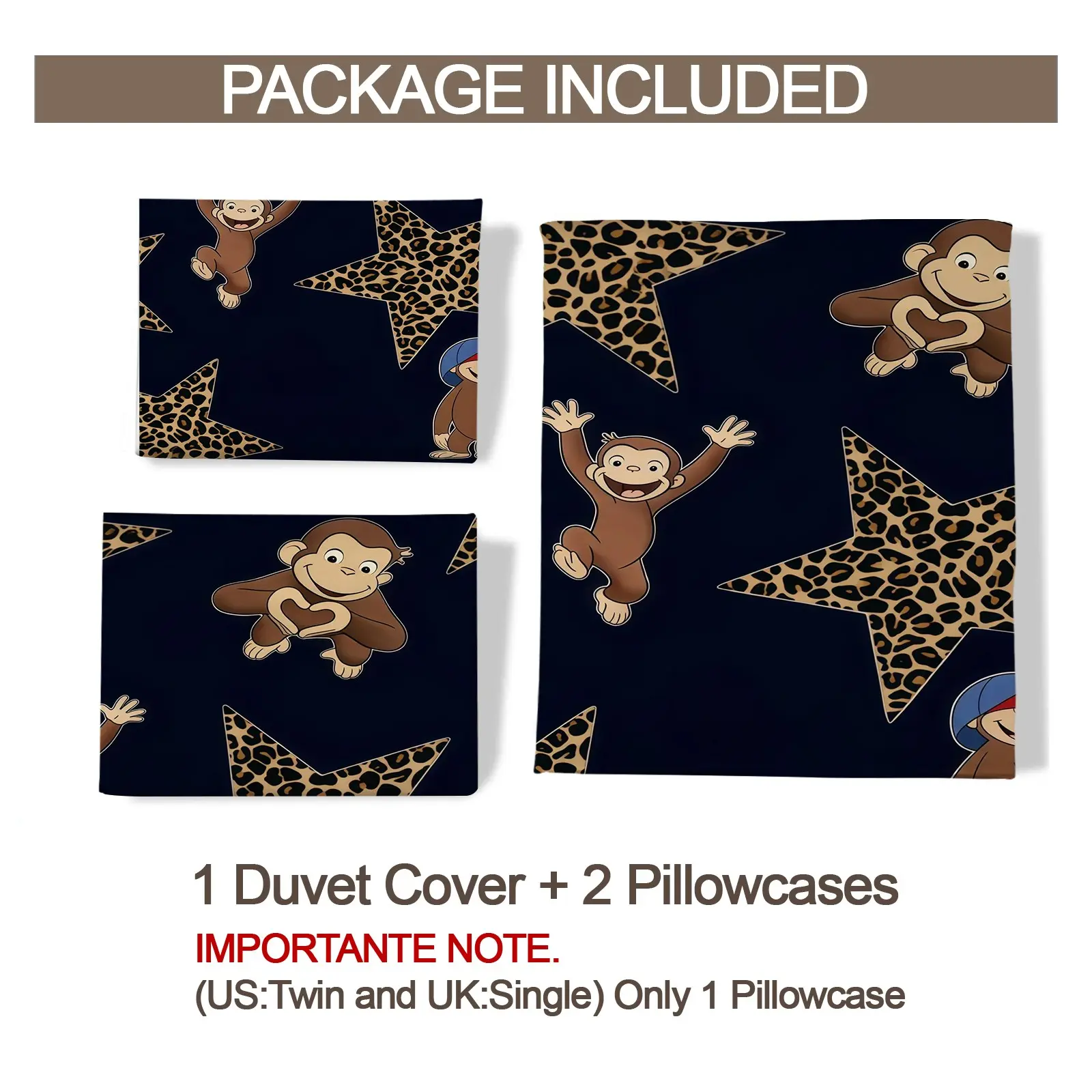 2/3 Piece Curious George Duvet Cover Set, 1 Duvet Cover + 1/2 Pillowcases NO FILLING INCLUDED, Cute Cartoon Monkey Leopard Star Bedding, Kids Bedroom Decor for Boys Girls Teens, Ideal Gift for Curious George Fans