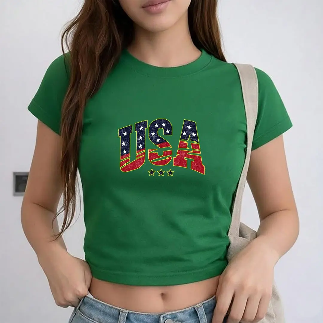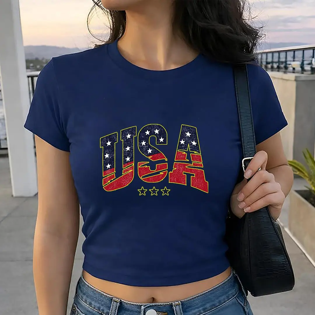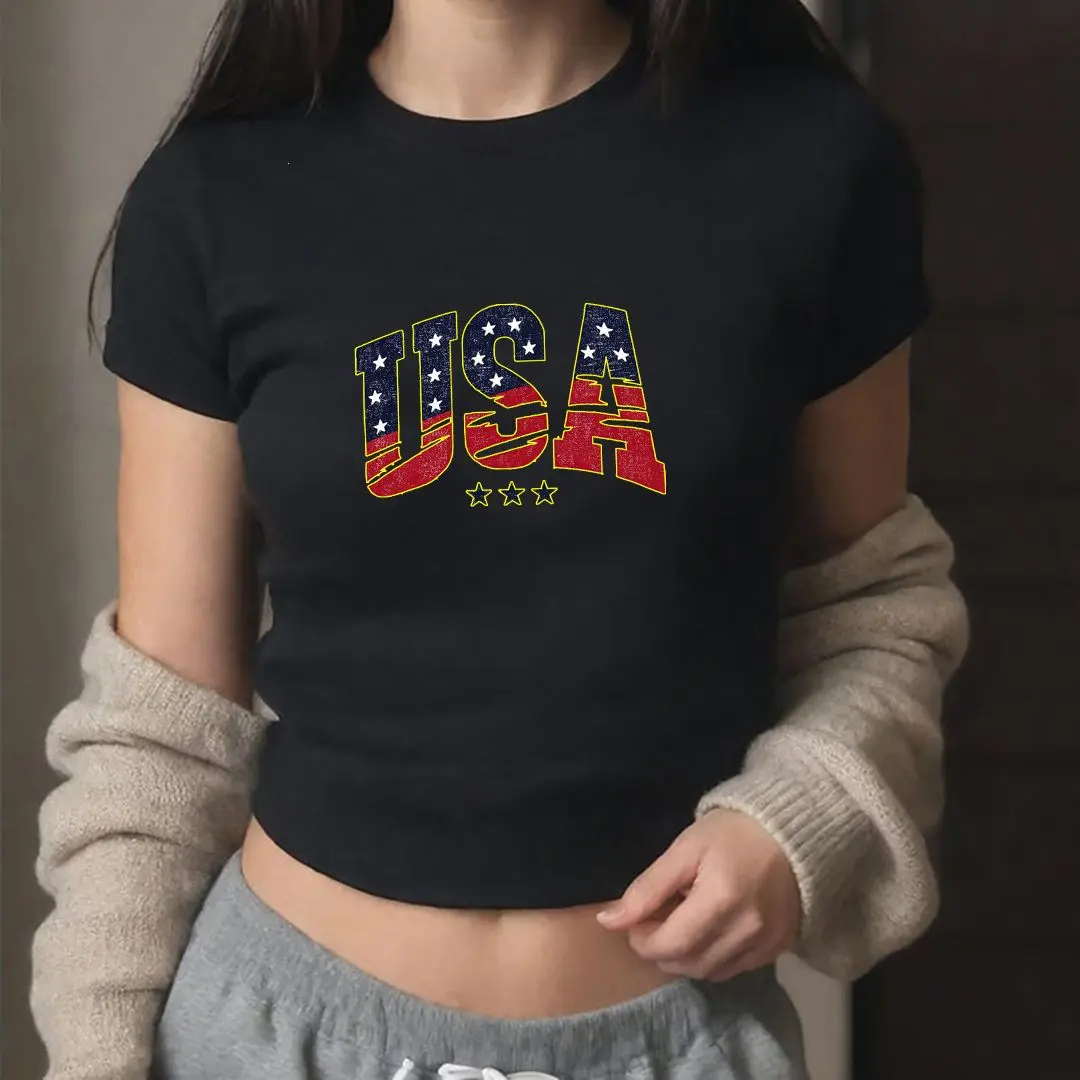 Vintage USA Flag Graphic Baby Tee, Distressed America Patriotic Tee, Retro 4th of July Outfit, Freedom Stars Stripes.