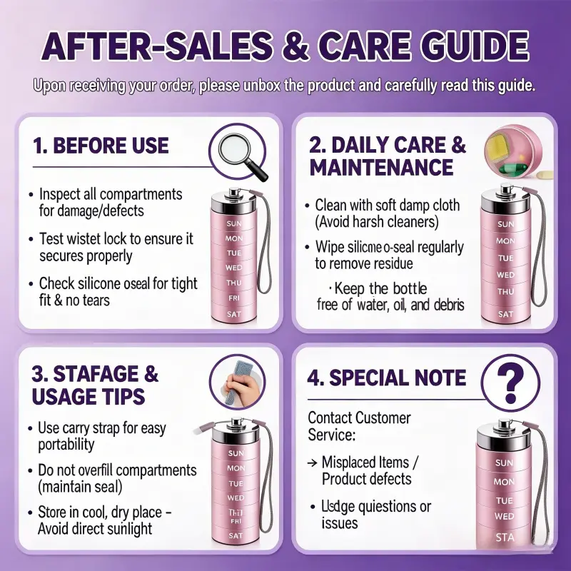 ·Premium Sturdy Metal Materials.The metal pill organizer 1 time a day uses medical grade aluminum alloy tube and the top cover is made of stainless steel, which is light but durable & BPA free.