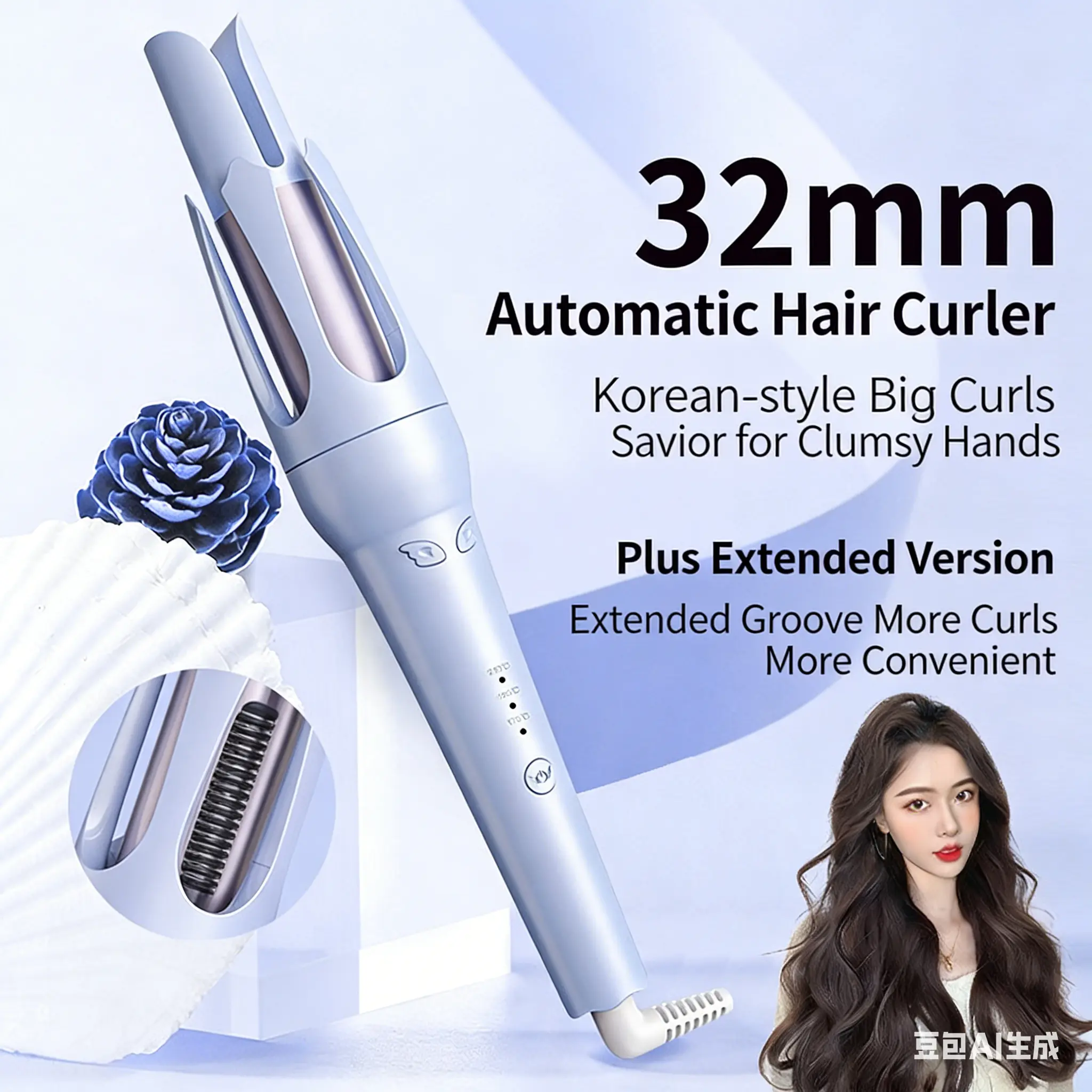 ·Effortless Curling: This 32mm electric curling iron is perfect for creating big waves. It's gentle on your hair, ensuring a smooth and damage-free styling experience. Ideal for those who want to curl their hair without the hassle.