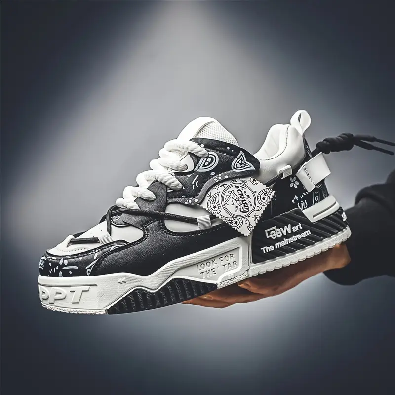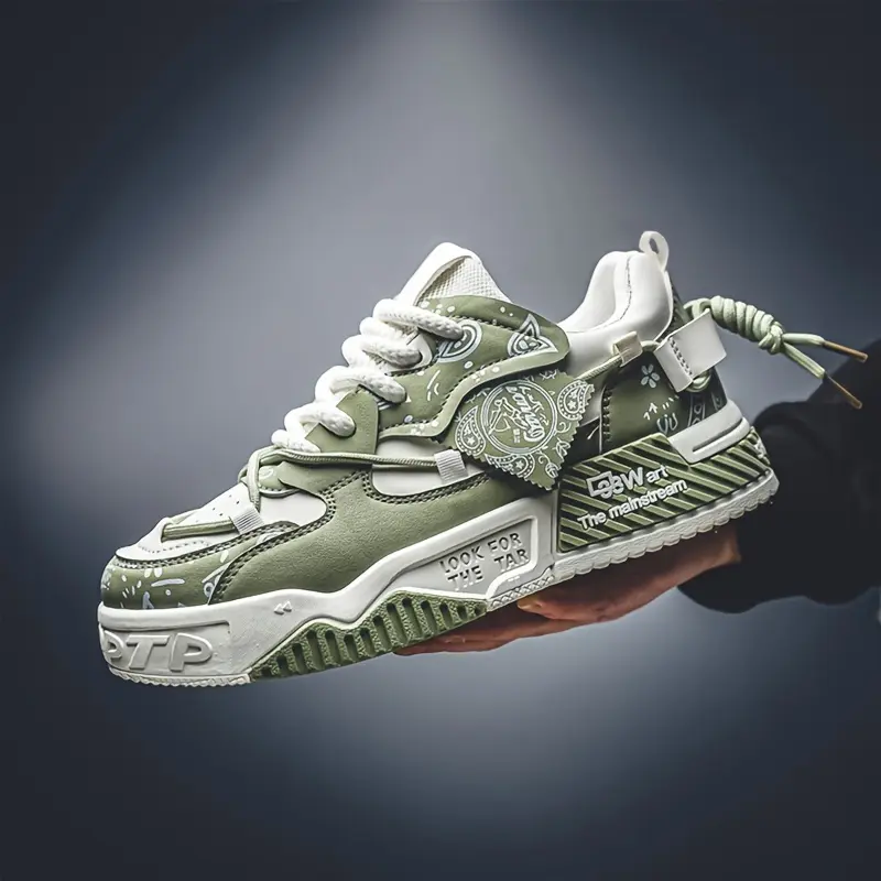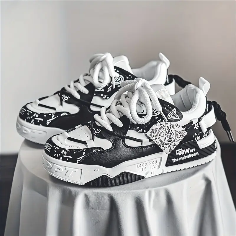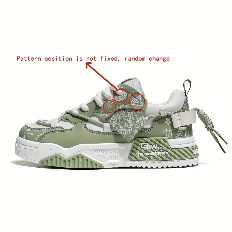 Men's Paisley Trendy Low Top Platform Skate Shoes With Double Shoelace, Non Slip Comfy Casual Shoes For All Seasons