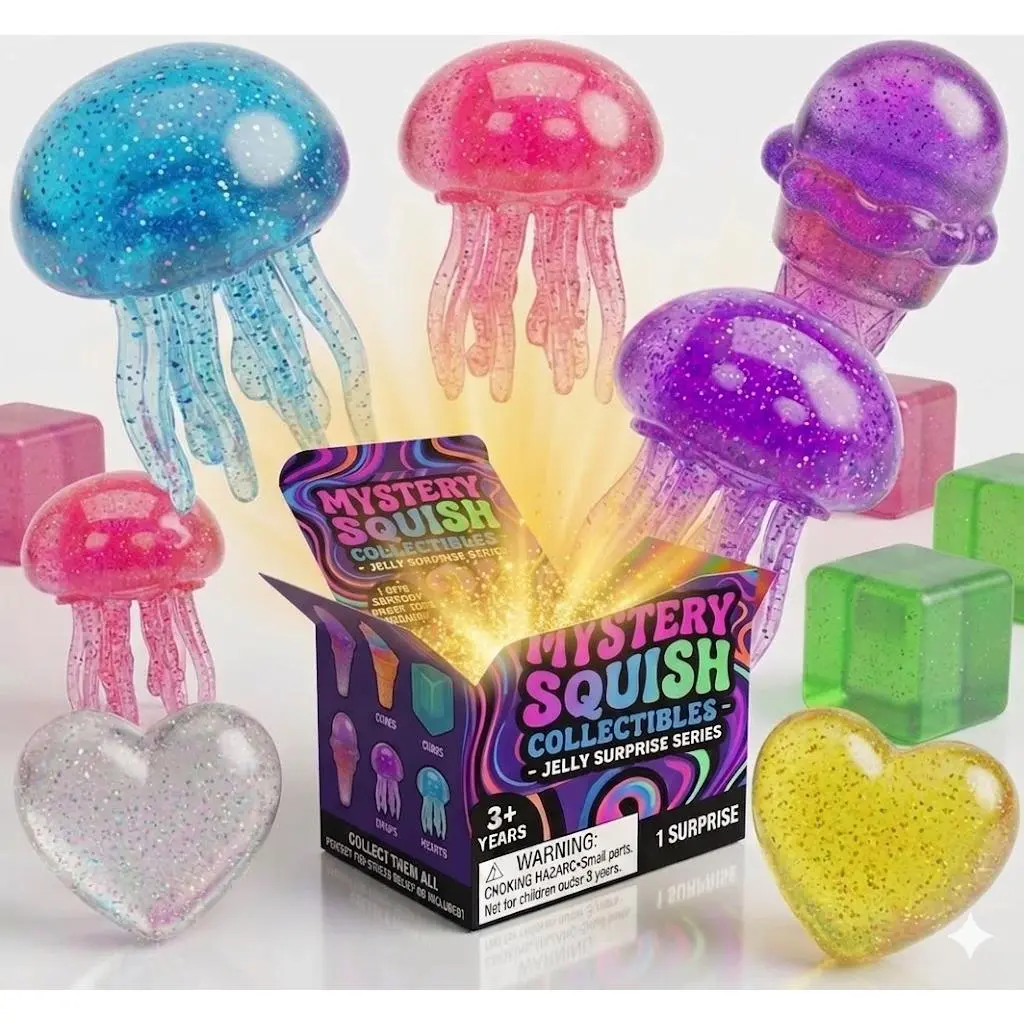 Mystery Squish Jelly Surprise Box - Sensory Jellyfish Fidget Toy, Sparkly Squishy Stress Relief for Kids & Adults, Collectible Blind Box Party Favors