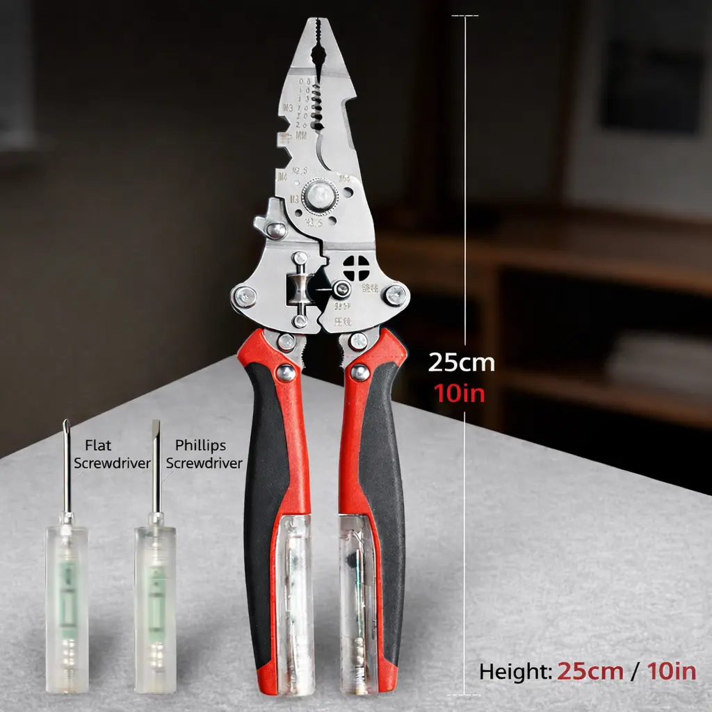 18-in-1 Multi-Functional Wire Stripper and Pliers, Foldable & Detachable, with Voltage Tester and Screwdriver Tips, Extended Handle for Easy Cutting, Stripping, and Pulling – Perfect for Home and Work Use