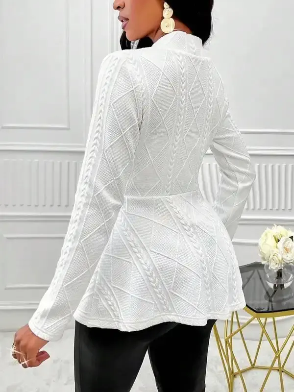 [Fitted Silhouette]: The peplum hem contributes to a structured and defined silhouette, making it flattering for various body shapes while maintaining a refined look.