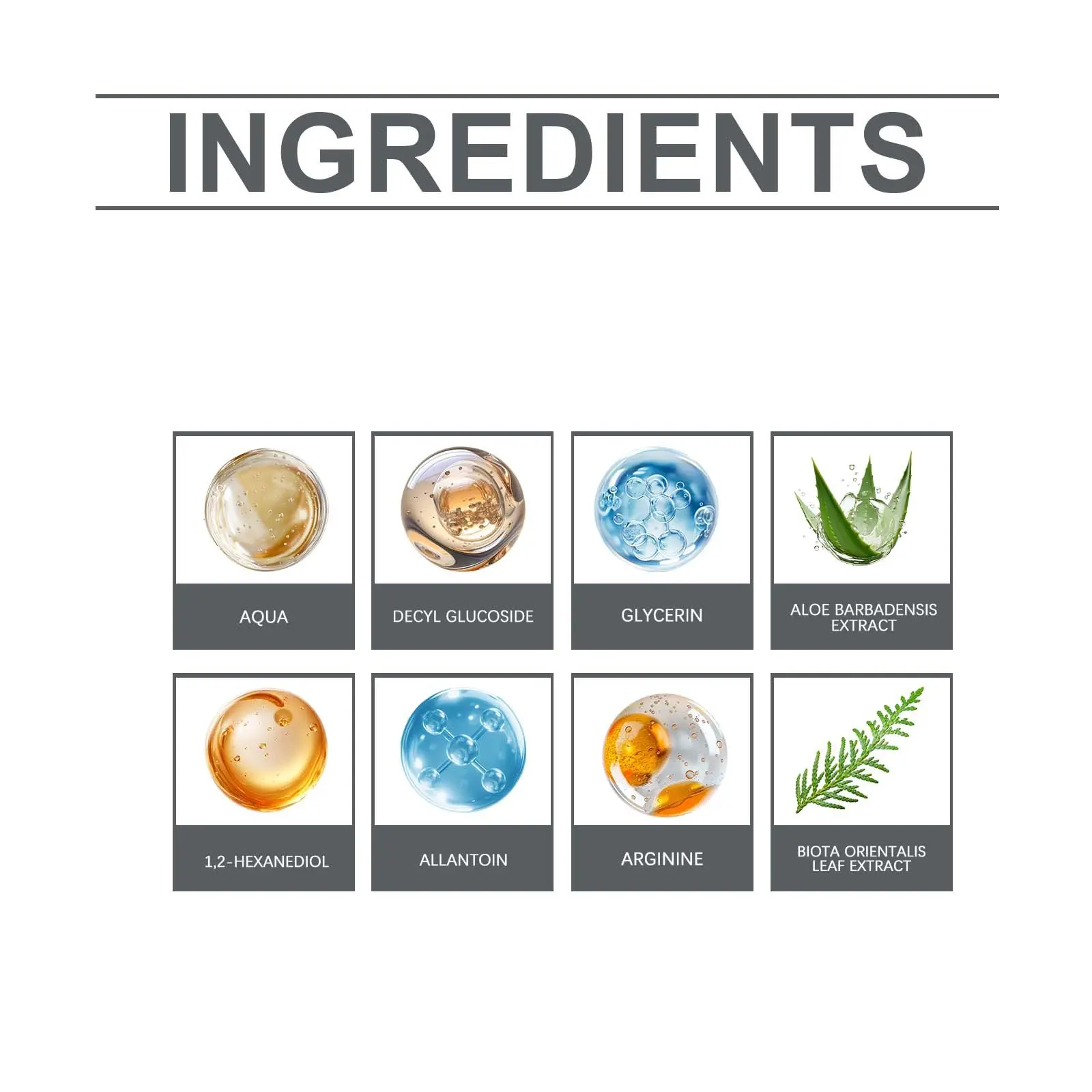 Water, Coco Glucoside, Glycerin, Aloe Vera Extract (Curacao), 1,2-Hexanediol, Urea, Arginine, Gardenia Leaf Extract