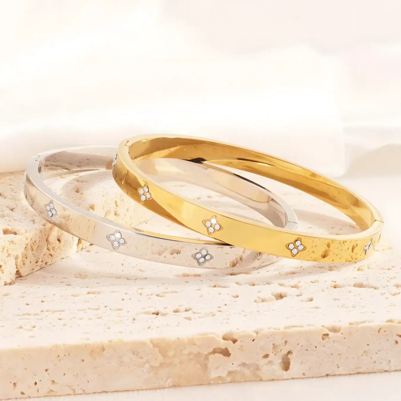 2Pcs Rhinestone Stainless Steel Bracelets, Stylish Versatile Bangle Set, Daily & Party Jewelry for Men and Women,Party gift