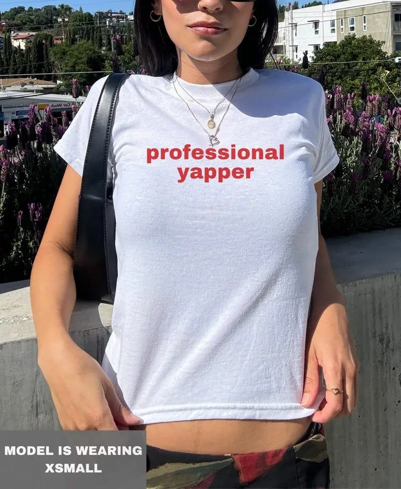 Professional Yapper Y2K Baby Tee Funny Aesthetic Fitted Crop Top Shirt