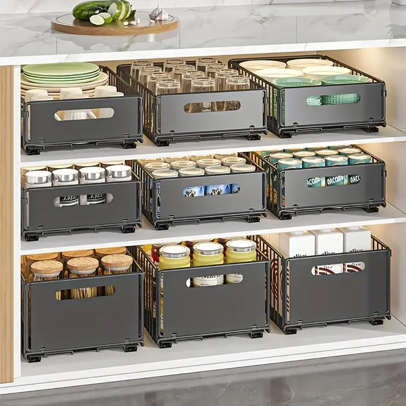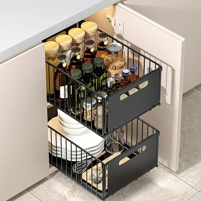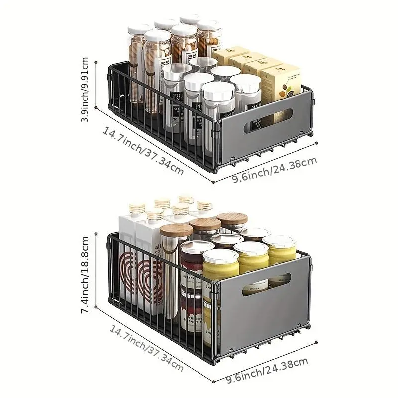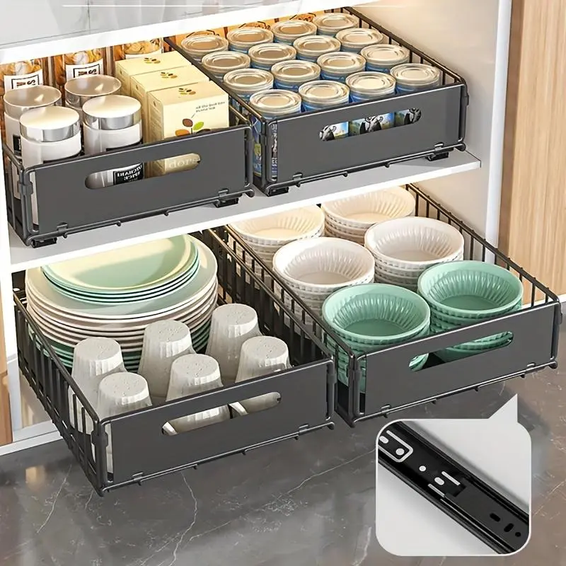 Pull Out Cabinet Storage Box, 2pcs Heavy-duty Sliding Drawer Food Cabinet Rack Fixed with Strong Glue And Handle, Suitable for Kitchen, Living Room, Bathroom, And Home Use