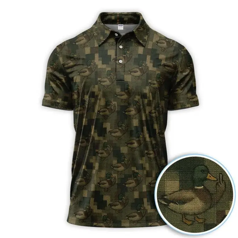 Mallard Duck Camo Polo Shirt for Men – Waterfowl Hunting Camouflage Golf Polo, Lightweight Breathable Outdoor Performance Shirt
