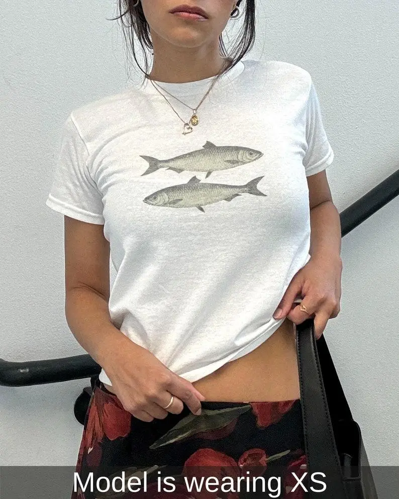 Fish Graphic Y2K Baby Tee Trendy 90s Aesthetic Fitted Crop Top Cute Shirt